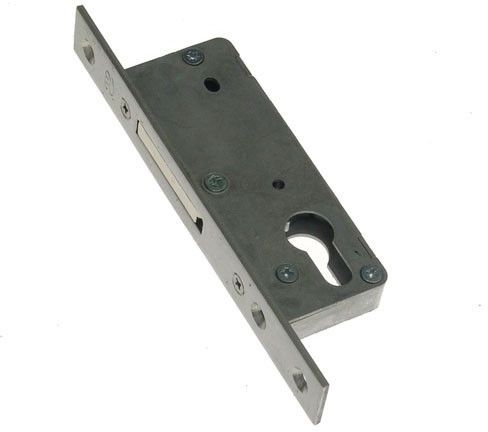 Zamek wpuszczany MC-30S ZASUWKOWY METALPLAST CZĘSTOCHOWA do drzwi z profili aluminiowych i stalowych blacha czołowa INOX 3x24mm dormas 30mm (wymiar od czoła blachy zamka do środka bębenka wkładki) uniwersalny prawy/lewy w komplecie tworzywowe elementy zakańczające klasyfikacja wg: PN-EN 12209-2005