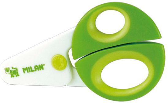 NOŻYCZKI MILAN PLASTIKOWE DLA DZIECI FUNNY 14690716 Nożyczki z plastikowym ostrzem i zaokrągloną końcówką. W całości wykonane z twardego i odpornego plastiku, tną tylko papier (nie tną włosów). Długość 12,2 cm, maksymalne rozchylenie 2 cm. Plastikowa ergonomiczna rączka wyściełana gumą. Bezpieczne, rozpadają się na 2 części, gdy dziecko na siłę próbuje coś uciąć. Przeznaczone dla małych dzieci powyżej 3 lat. Dostępne w 4 kolorach: żółtym, niebieskim, czerwonym i zielonym. Oryginalny produkt stworzony przez własny dział badawczo-rozwojowy MILAN. Rozmiar nożyczek: 12,2 x 6,7 x 1 cm. Kolor wydawany losowo Jednostka sprzedaży: 1 szt