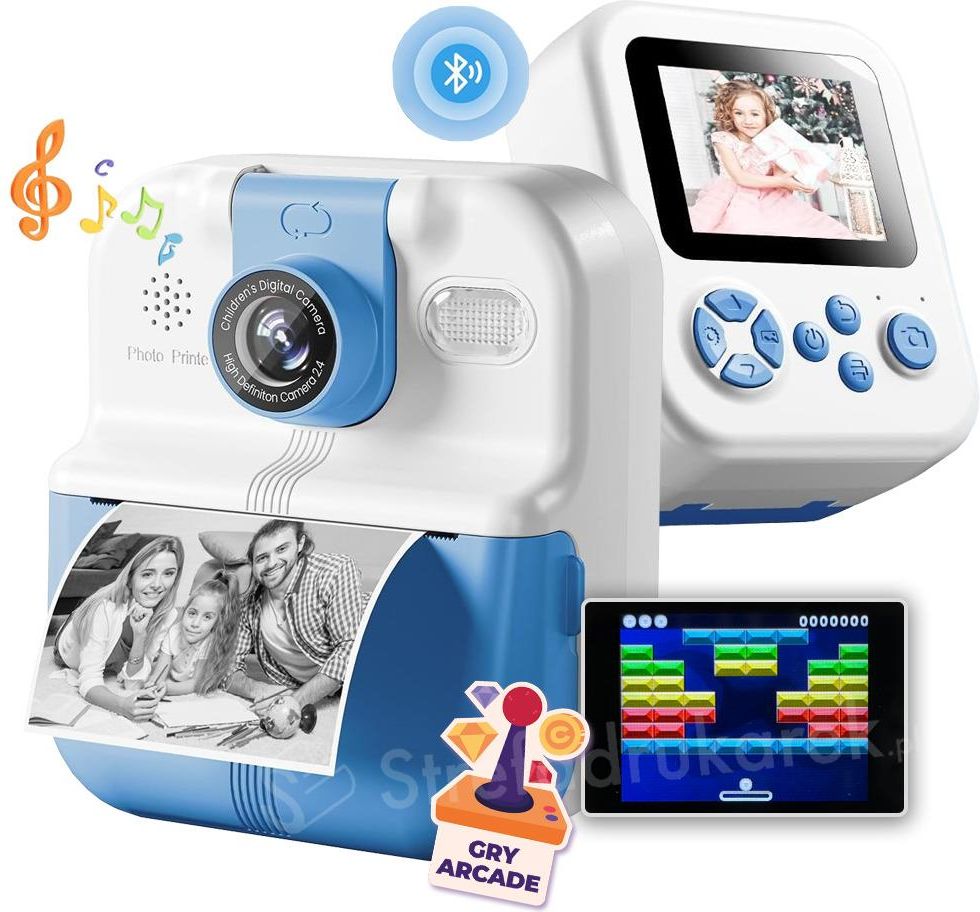 Drukarka z aparatem natychmiastowym dla dzieci Phomemo P02 FOTUŚ To coś więcej niż kolejna pluszowa zabawka. FOTUŚ® to aparat, drukarka, kamera, odtwarzacz MP3 i galeria zdjęć w jednym! Dodatkowo 5 gier typu Arcade. Ten gadżet wciągnie Twoje dziecko i rozbudzi jego kreatywność. Prosta obsługa za pomocą dużych przycisków sprawia, że nawet 5-latek poradzi sobie z jego obsługą bez frustracji. Zabawka Druk termiczny Dzieci +5 lat Zabawa i natychmiastowy efekt “Wow!” Dzieci mogą od razu cieszyć się owocami swojej kreatywności. Nagrywać wideo w jakości HD, oglądać nakręcone klipy bezpośrednio na ekranie urządzenia, kolekcjonować zrobione zdjęcia, tworzyć albumy czy drukować i ozdabiać nimi swoje otoczenie. Proste gry w stylu retro, wbudowane w urządzenie nie wymagają dostępu do internetu, są wolne od mikropłatności i reklam, a ich mechanika koncentruje się na czystej rozgrywce, która w angażujący sposób stymuluje rozwój dziecka na wielu płaszczyznach. Lorem ipsum dolor sit amet consectetur, adipisicing elit. Totam, nobis. Lorem ipsum dolor, sit amet consectetur, adipisicing elit. Commodi dolores magnam numquam dolor nobis omnis sunt mollitia eligendi vel nulla asperiores, ad repellendus error explicabo ipsa maiores, rem saepe debitis consequatur ea provident aliquid reiciendis facere? Accusamus eligendi molestiae, sunt numquam? Consequuntur vel a dicta architecto dignissimos debitis quaerat, velit quam facere, ipsa dolorem eligendi. Tempora ipsa nobis sequi veritatis doloremque, modi corrupti neque est quas suscipit a rerum ipsam iusto labore expedita quam dolor quo architecto. Vel at eaque nobis, odio deleniti accusantium, aliquid ea earum ullam voluptatem neque debitis numquam harum officiis voluptas est corrupti assumenda! Quod, repellat! Zabawa po obu stronach aparatu Dzieci uwielbiają być w centrum wydarzeń, a nasz aparat im to umożliwia! Obiektyw obracający się o 180 stopni to genialne rozwiązanie, które pozwala na błyskawiczną zmianę kadru. Twoja pociecha może w jednej chwili sfotografować otaczający ją świat, a w następnej – jednym prostym ruchem – zrobić sobie zabawne selfie z przyjaciółmi lub nagra filmik, na którym jest głównym bohaterem. Dziecko uczy się opowiadać historie, a Ty zyskujesz pewność, że dajesz mu bezpieczne narzędzie do wyrażania siebie. Każda przygoda uchwycona w pełnym blasku Koniec z rozczarowaniem i ciemnymi, nieostrymi kadrami. Z wbudowaną lampą błyskową każda chwila, niezależnie od pory dnia, staje się idealną okazją do zrobienia zdjęcia. Teraz każde zdjęcie – czy to portret ulubionego misia w jego "jaskini" pod kocem, czy pamiątka z wieczornego przyjęcia urodzinowego – będzie wyraźne i pełne życia. To gwarancja, że cenne wspomnienia zostaną zachowane w najlepszej jakości, mały fotograf będzie dumny ze swoich dzieł, a Ty zyskasz galerię bezcennych chwil. Ulubione piosenki pod ręką w trakcie zabawy Wbudowany odtwarzacz MP3 dodaje zabawie dźwięku. Wystarczy wyjąć kartę SD, wgrać na nią ulubione utwory, włożyć z powrotem i gotowe – muzyka od razu jest w urządzeniu. Do odtwarzania nie potrzeba dodatkowej aplikacji, ani dostępu do internetu. Dziecko słucha swoich piosenek podczas zabawy, a Ty nie musisz sięgać po telefon, aby umilić mu czas ulubioną melodią. 5 gier Arcady, które uczą i angażują bez dostępu do internetu Proste gry w stylu retro, wbudowane w urządzenie nie wymagają dostępu do internetu, są wolne od mikropłatności i reklam. Koncentrują się na czystej rozgrywce, która w angażujący sposób stymuluje rozwój dziecka. Każda gra to doskonały trening precyzji małych palców, szybkości reakcji i koordynacji ręka-oko – kluczowych umiejętności w nauce pisania czy sporcie. Rozrywka na długie godziny Bateria w aparacie o pojemności 1500 mAh wystarcza na 4-5 godzin twórczych aktywności. Do zestawu dołączona jest karta SD o pojemności 32 GB, na której mały artysta zapisze wykonane zdjęcia, filmy oraz ulubione piosenki do słuchania, do których będzie mógł wrócić podczas kolejnej zabawy. W pudełku wszystko, co potrzebne, by zacząć zabawę od razu po otwarciu Co zawiera zestaw mini drukarka Phomemo P02 FOTUŚ® w kolorze niebieskim 3 rolki białej, papierowej taśmy 56 mm x 6 m (bez kleju) karta pamięci micro SD o pojemności 32 GB kabel USB/USB-C do łączenia z komputerem smycz do zwieszenia na szyi instrukcja obsługi WalkPrint Jedna aplikacja, nieskończenie wiele pomysłów Bezpłatna aplikacja WalkPrint – serce drukarki FOTUŚ i brama do świata wyobraźni Twojego dziecka. Zamień czas przed ekranem w kreatywną zabawę! Czekają tu tysiące gotowych wzorów: naklejek, ramek, kolorowanek i gier. Aplikacja jest bezpieczna i działa na smartfonach oraz tabletach z systemem Android i iOS. Dostępna na: Pobierz z Google Play lub App Store WalkPrint to w 100% bezpłatna i bezpieczna aplikacja, która otwiera przed Twoim dzieckiem cały wszechświat możliwości. Pobierz za darmo