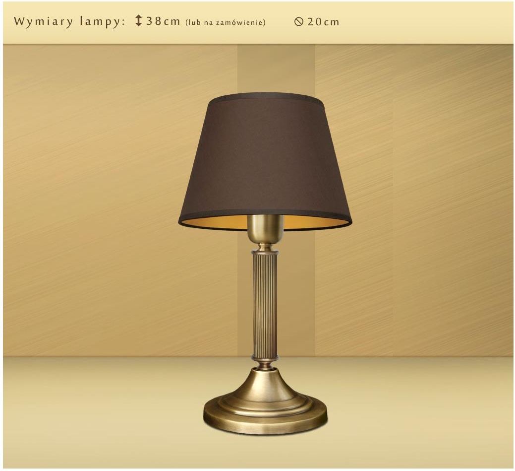 Lampa mosiężna biurkowa / stołowa. - Wykonana w całości z elementów z pełnego mosiądzu. Mosiądz to trwały, szlachetny i ponadczasowy materiał - kliknij, aby dowiedzieć się więcej. - Wykończenie mosiądzu: złota patyna. - Abażur ciemny brąz ze złotym środkiem lub (symbol lampy L-B1) ecru lub …