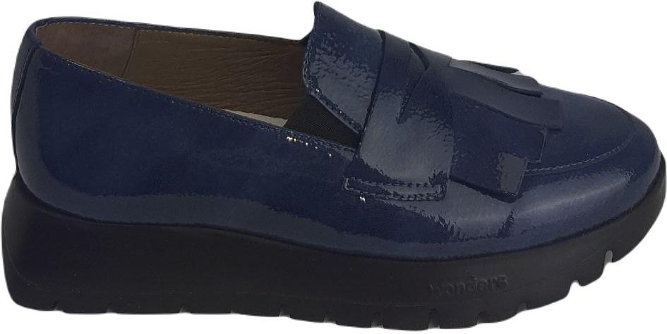 Mokasyn WONDERS MATERIA A-2454 IRIS NOCHE Mokasyny MATERIA z lakierowanej skóry. Te ponadczasowe buty inspirowane mokasynami typu Penny mają detale z frędzlami na przodzie i boczne gumki zapewniające lepsze dopasowanie. Podeszwa, opracowana w technologii WondersFly™, gwarantuje lekkość i wygodę. …