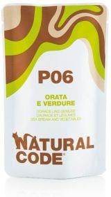 Marka *Natural Code* została stworzona w 2010 r. we Włoszech, a jej pomysłodawca chciał by jedzenie dla zwierząt składało się wyłącznie z produktów naturalnych i spełniających wszystkie ich wymagania żywieniowe. Dlatego w formułach Natural Code znajdziesz mięso z gospodarstw wolno wybiegowych, ryby poławiane w oceanach, a także warzywa najwyższej jakości. Połączenie wiedzy oraz doskonałych składników sprawia, że karma pod kątem, zapachu, koloru i konsystencji zachwyca zarówno kota, jak i jego właściciela. Składniki są gotowane na parze i konserwowane wodą, w której się gotują. Dopracowany proces przygotowania, począwszy od wyboru składników po pakowanie, sprawia, że efekt końcowy zaspokoi potrzeby najbardziej wymagającego konsumenta. Każda z formuł została stworzona we współpracy z Wydziałem Nauk Weterynaryjnych w Turynie i pracował nad nią sztab specjalistów żywienia kotów. Karmy zostały oznaczone unikatowym krótkim symbolem ułatwiającym zapamiętanie ulubionego smaku naszego pupila. Mokra karma Natural Code 70g to posiłek dla kota o dużej zawartości mięsa. *Natural Code Cat P06 Sea bream and vegetables* to karma uzupełniająca dla dorosłych kotów. Mięso z dorady jest chude i bogate w sole mineralne (fosfor, żelazo, wapń) oraz witaminy z grypy B (ryboflawina, niacyna i tiamina). Dodatek marchewki, dzięki zawartości błonnika pozytywnie wpływa na układ pokarmowy. W tej formule dodaliśmy również ryż, który jest lekkostrawny i wysoce energetyczny. *Skład:* 58% dorada, 2,86% marchewka, 1,43% zielony groszek, 2% ryż, 35,71% woda. *Analiza:* wilgotność 81,39%, białko surowe 11,53%, tłuszcz surowy 0,66%, popiół surowy 0,72%, włókno surowe 0,11%. Energia 65,52 Kcal/100g.