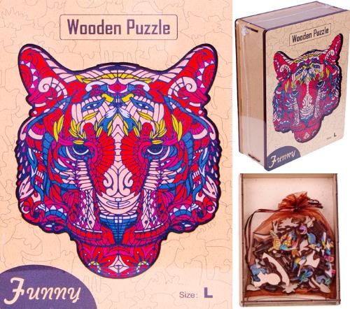 ✅DREWNIANE PUZZLE DLA DOROSŁYCH UKŁADANKA PREZENT ✅ ✅ ✅ DREWNIANE PUZZLE DLA DOROSŁYCH to niesamowity prezent zapewniający godziny wspaniale spędzonego czasu. Zestaw 183 elementów o nieregularnym kształcie to wspaniała rozrywka dla każdego, kto ceni sobie unikalność i lubi stawiać sobie nowe wyzwania! Wooden Puzzle mają niezwykle atrakcyjny motyw w kształcie kolorowego TYGRYSA , która będzie świetnie się prezentował na ścianie nadając jej niesamowitego charakteru! Układając puzzle nie tylko rozwijamy koncentrację, ćwiczymy cierpliwość, ale także pozwalamy sobie na chwilę relaksu i wyciszenia. Skupiając się tylko na układance zapominamy o problemach, a pełne ułożenie puzzli daje nam mnóstwo satysfakcji. Wykonanie Obrazek wykonany jest ze sklejki pomalowanej różnymi kolorami, a następnie zostaje pocięty specjalną maszyną na unikalne kształty. Kształt puzzli Każdy element posiada nieregularny kształt o wyglądzie zwierząt. Wśród puzzli znajdziesz słonia, żyrafę, a nawet ptaka. Mnóstwo różnych wzorów nie ułatwia układania, ale gdy już dopasujesz odpowiedni kształt do innego napełnisz się radością i ogromną satysfakcją. Pomysł na prezent lub dekorację ściany Gotowy obraz możesz zawiesić na ścianie dekorując ją unikalnym dziełem. Możesz również podarować bliskiej osobie niesamowity prezent własnoręcznie układany. Do puzzli można dokupić w własnym zakresie ramkę a następnie stworzyć obraz, który świetnie prezentuje się na ścianie. Trudność Ze względu na różnorodność kształtów, układanie drewnianych puzzli może się okazać trudniejsze od układania tradycyjnych puzzli. Na pewno potrzeba będzie szczypty cierpliwości i odrobiona wolnego czasu. Zapewniamy jednak, że efekt końcowy wynagrodzi wszystko :) Opakowanie Puzzle zostały zapakowane w woreczek, który umieszczono w stylowej, drewnianej skrzyneczce nadającej się idealnie na prezent. Bezpieczeństwo: Poszczególne elementy są w pełni bezpieczne i wykonane z należytą starannością. Bezpieczeństwo potwierdza certyfikat CE. Korzyści, jakie zapewnia układanie puzzli: trening cierpliwości rozwój kreatywności i logicznego myślenia wspaniale spędzony czas piękna dekoracja na ścianę, unikalny pomysł na prezent Motyw: TYGRYS Ilość elementów: 183 Rozmiar L Wymiary opakowania ok; 20 x 6,5 x 15cm ✅5902444061072 / NO-1006107 ✅ ✅ Kod producenta: 5902444061072 ✅DREWNIANE PUZZLE DLA DOROSŁYCH UKŁADANKA PREZENT ✅
