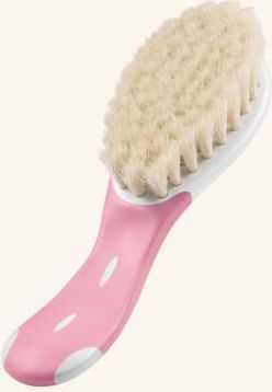 Miękka szczotka dla niemowląt Nuk 256.371 Miękka szczotka dla niemowląt NUK jest doskonała w czasie pierwszych miesięcy życia, gdy dziecko ma miękkie, puszyste włoski. Niezwykle miękkie włosie kozie masuje delikatną skórę głowy niemowlęcia. Antypoślizgowy uchwyt umożliwia pewne trzymanie. Miękka szczotka dla niemowląt NUK jest wykonana z wytrzymałego materiału i występuje w pastelowych kolorach.Cechy:doskonała w pierwszych miesiącach życiaz niezwykle miękkiego włosia koziegopastelowe koloryBez Bisfenolu A