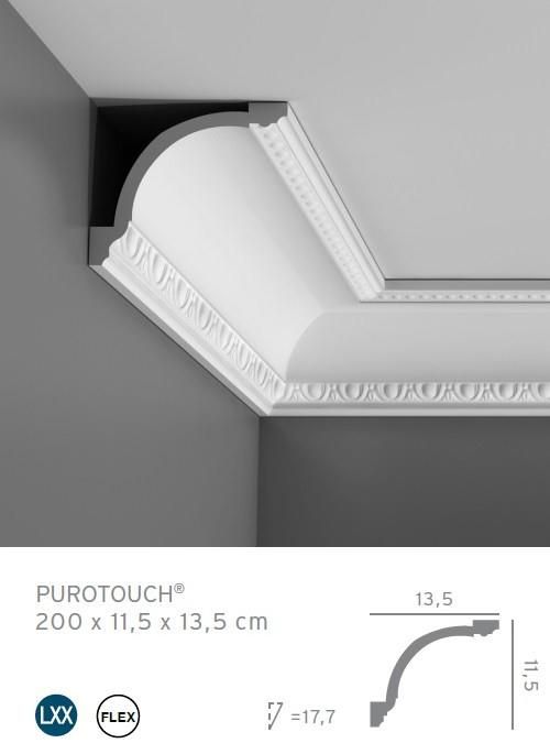 Listwa sufitowa 11,6cm Gzyms C216 Orac Decor Orac Decor Symbol: C216 Materiał wykonania: Purotouch Malowanie: możliwe Kolor: Biały Długość (cm): 200 Wysokość (mm): 116 Szerokość (mm): 133 Właściwości: Odporność na wilgotność i uderzenia Współczesny gzyms z tradycyjną inspiracją. Zdobiony dekoracją na krawędziach. Model szeroki, dostępny również jako wersja Flex (elastyczna). Purotouch to wysokiej jakości, o dużej gęstości poliuretan pozwala uzyskać drobne szczegóły. Zalety materiału Elitarny i Kreatywny, projekt o kompletnym zakresie dla silnego oddziaływania wizualnego Głęboki relief i wyraźny ornament Łatwe w docinaniu i instalacji Pod kątem 90° do perfekcyjnego pozycjonowania Prostopadłe, szorstkie powierzchnie klejenia należy wyszlifować w celu uzyskania maksymalnej przyczepności Produkt zagruntowany, dla otrzymania gładkiej i matowej powierzchni oraz zwiększenia przyczepności farby Do stosowania na zewnątrz i w wilgotnym środowisku należy używać z DecoFix Hydro i pokryć specjalną powłoką do stosowania na zewnątrz Gzymsy tworzą wizualnie atrakcyjne połączenie pomiędzy ścianami i sufitem. Od gładkich do barokowych, od dekoracyjnych do funkcjonalnych – oferujemy wysokiej jakości rozwiązania na każdą kieszeń. Zalety produktów Orac 1. ŁATWY MONTAŻ Produkty są łatwe w obróbce i montażu. Orac oferuje akcesoria ułatwiające proces montażu. 2. GOTOWE DO MALOWANIA Wszystkie listwy pokryte są specjalnym, zabezpieczającym środkiem, ułatwiającym absorpcję farby. 3. ODPORNOŚĆ NA PĘCZNIENIE listwy nie ulegają odkształcaniu, rozwarstwianiu i pęcznieniu pod wpływem wilgoci. 4. WODOODPORNE MATERIAŁY Produkty są wodoodporne, dlatego mogą być montowane w pomieszczeniach o podwyższonej wilgotności. 5. NIEWIDOCZNE POŁĄCZENIA przy zastosowaniu oryginalnego kleju montażowego Orac FDP500 Decofix Pro oraz kleju do łączeń (spoinowania) Orac FX200 DecoFix Extra możemy uzyskać porządany efekt ułożenia listew z niewidocznymi łączeniami. 6. LISTWY Z ATESTAMI HIGIENICZNYMI atest zaświadcza o jego bezpieczeństwie dla zdrowia ludzi oraz środowiska. 7. GWARANCJA ZADOWOLENIA I SATYSFAKCJI 8. PEWNE OPAKOWANIE. Polecane kleje Listwy oraz sztukaterię montujemy za pomocą kleju montażowego Orac FDP500 Decofix Pro. W zależności od podłoża tubka kleju starcza na ok. 4 listwy (8-9 mb listwy). Klej nakładamy po długości listwy. (nigdy nie nakładamy kleju punktowo). Listwy łączymy ze sobą lub szpachlujemy za pomocą kleju do łączeń Orac FX200 DecoFix Extra. Jedno opakowanie kleju wystarcza na połączenie średnio ok 80 metrów listew) INSTRUKCJA MONTAŻU Listwy powinny być aklimatyzowane przez około 48 godzin w pomieszczeniu, w którym będą montowane. Przykładamy listwę do rogu sufitu i ściany w pozycji montażowej. Obrysowujemy dolną i górną krawędź wzdłuż listwy aż do przeciwległej ściany, na której będziemy montowali drugą listwę. Analogicznie postępujemy na drugiej prostopadłej ścianie. Uzyskujemy w ten sposób obrys i linie (kąty) montażu i cięcia listew względem siebie. Dolny punkt linii cięcia listwy znajduje się w samym narożniku tj. w punkcie łączenia dwóch ścian. Górny punkt linii cięcia listwa znajduje się na narysowanym w pkt 3 przecięciu linii krawędzi górnej listew (na suficie) pod kątem 90 stopni. Cięcia dokonujemy na ukośnicy lub na odpowiednio dużym w stosunku do wysokości listwy korycie uciosowym. Klej Orac FDP500 Decofix Pro nakładamy po długości na lewej stronie profilu w miejscu styku z klejonym podłożem. Klej nakładamy faliście (ewentualnie liniowo w przypadku niewielkich listew o małej powierzchni klejenia). Listwę mocno dociskamy do podłoża. Zbieramy nadmiar wyciśniętego kleju. Postępujemy analogicznie w przypadku drugiej ściany. Przykładamy i doklejamy drugi profil, odpowiednio docięty do łączonej listwy. Łączenie dwóch listew wypełniamy klejem Orac FX200 DecoFix Extra, dociskając następne do siebie obie listwy. Nadmiar kleju zbieramy. Po 1-2 godzinach należy skontrolować i ewentualnie zebrać nadmiar kleju DecoFix Extra. Szczelinę pomiędzy ścianą\sufitem a listwą, oraz pomiędzy dwoma listwami, obrabiamy przy pomocy kleju Decofix Pro. Zbieramy nadmiar kleju.