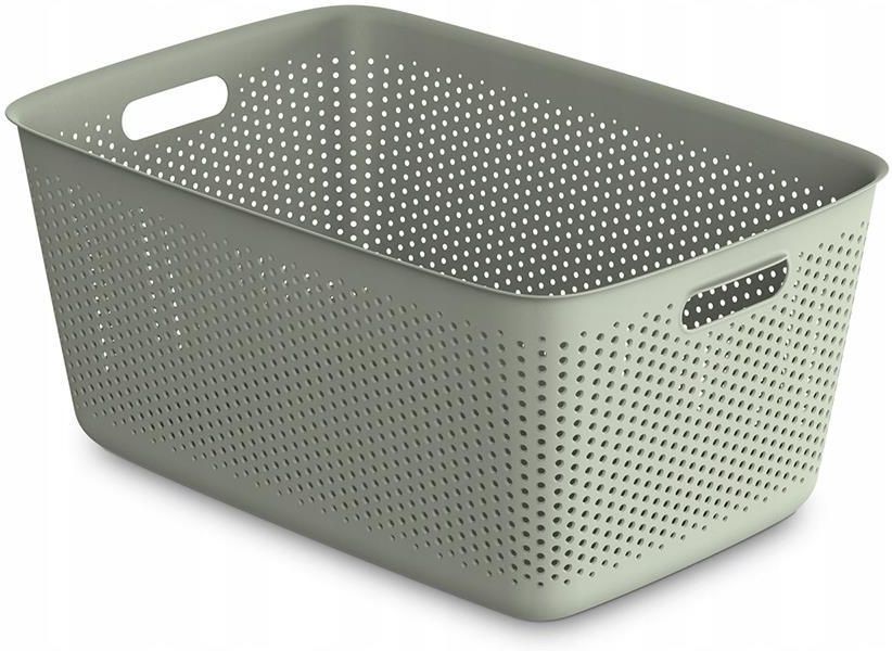 Kosz plastikowy 45 l 0407007275 Kolor: Szałwiowy Materiał: Tworzywo sztuczne - BPA Free Marka: Moxom Zastosowanie: Zmywarka, Zamrażalka, Do kontaktu z żywnością Pojemność: 45 l Wysokość: 26,5 cm Szerokość: 39,5 cm Długość: 58 cm Do kosza można dokupić pokrywę - dostępna na naszych aukcjach. Dlaczego warto kupić? Wentylacja: Otwory umożliwiają cyrkulację powietrza, co pomaga w redukcji nieprzyjemnych zapachów oraz zapobiega gromadzeniu się wilgoci. Lekkość: Plastikowy materiał sprawia, że kosz jest lekki, co ułatwia jego przenoszenie nawet gdy jest pełen. Trwałość: Wysokiej jakości plastik jest odporny na uszkodzenia mechaniczne oraz warunki atmosferyczne, co zapewnia długą żywotność kosza. Łatwość w czyszczeniu: Plastikowy kosz jest łatwy do mycia i konserwacji, co jest szczególnie ważne w przypadku użytkowania w kuchni lub łazience. Bezpieczeństwo: Brak ostrych krawędzi w plastikowym koszu zmniejsza ryzyko skaleczeń, co jest istotne zwłaszcza w domach z dziećmi. Odporność na korozję: Plastik nie rdzewieje, co jest dużą, szczególnie w wilgotnych pomieszczeniach. Łatwość segregacji: Otwory w koszu umożliwiają szybkie wizualne sprawdzenie zawartości, co jest pomocne przy segregacji przedmiotów. Mobilność: Plastikowy kosz jest wyposażony w uchwyty, co ułatwia jego przenoszenie z miejsca na miejsce. OpenStore - Twoja przestrzeń, Twoja organizacja. Linia OpenStore to idealne rozwiązanie, które sprawi, że Twoja szafa, spiżarnia, łazienka, garderoba oraz pralnia będą perfekcyjnie zorganizowane i estetyczne. Dzięki minimalistycznemu wzornictwu, pojemniki z tej serii świetnie komponują się także w salonie. Specjalnie zaprojektowane uchwyty ułatwiają wkładanie i wyjmowanie pojemników z półek oraz ich przenoszenie pomiędzy pomieszczeniami. Różnorodne rozmiary pojemników pozwalają na dowolną aranżację, co sprawia, że zarówno dziecięce ubranka, jak i środki czystości znajdą swoje miejsce. Zainspiruj się kształtem pojemników i układaj je jeden na drugim, aby jeszcze bardziej zoptymalizować przestrzeń do przechowywania.