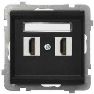 Gniazdo HDMI podwójne z serii Ospel Sonata w kolorze czarnym. Dzięki gniazdu estetycznie wyprowadzisz 2 kable HDMI i podłączysz do niego oddalone urządzenia. Świetnie sprawdzi się w miejscach, w których potrzebujesz od czasu do czasu podłączyć np. laptop do projektora lub monitora. Produkty wchodzące w skład zestawu dostarczane są oddzielnie.