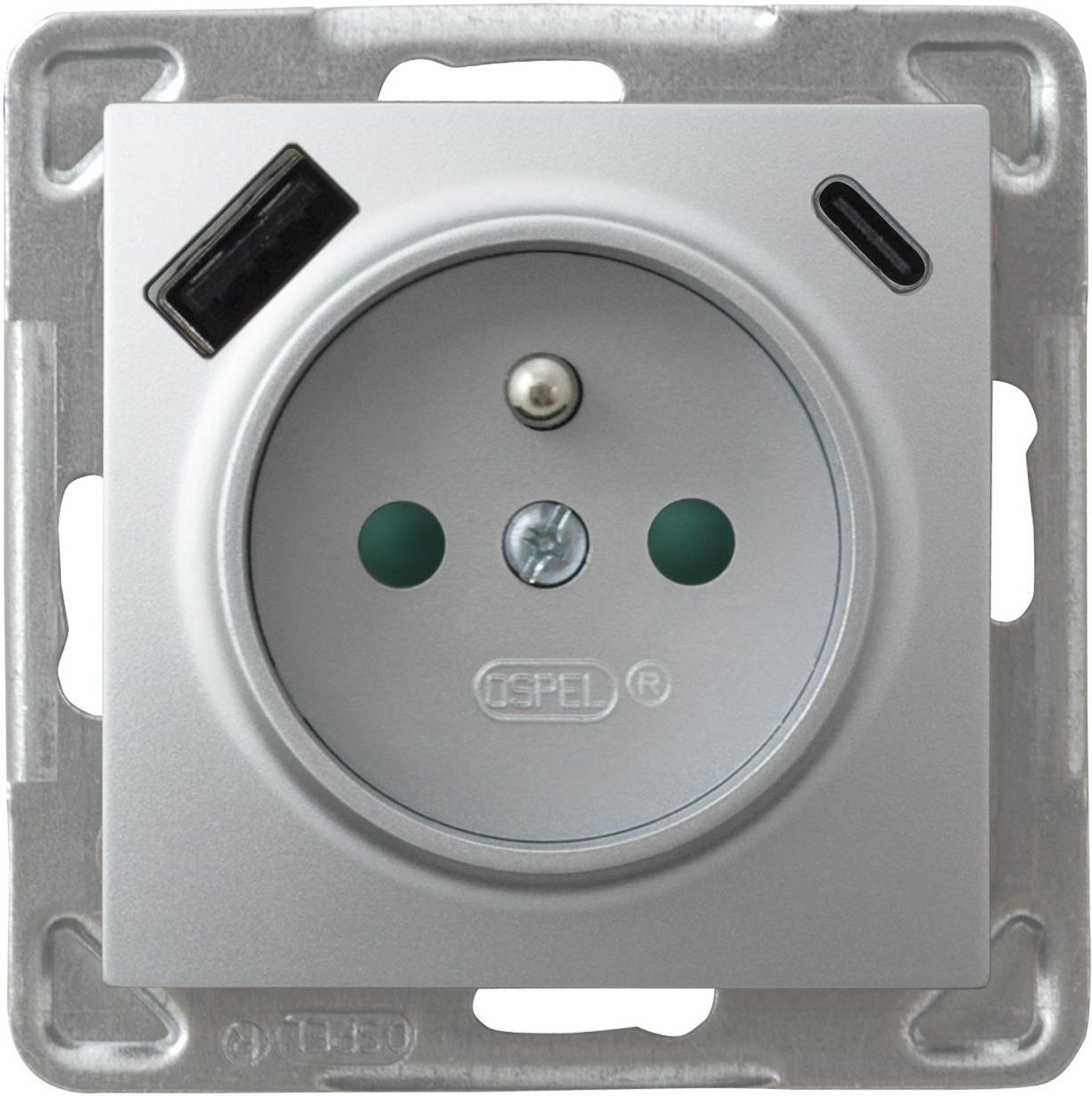 Ospel Gniazdo Pojedyncze Z Ładowarką Impresja Srebrny Gp-1Yzpusbac/M/18 Tychy