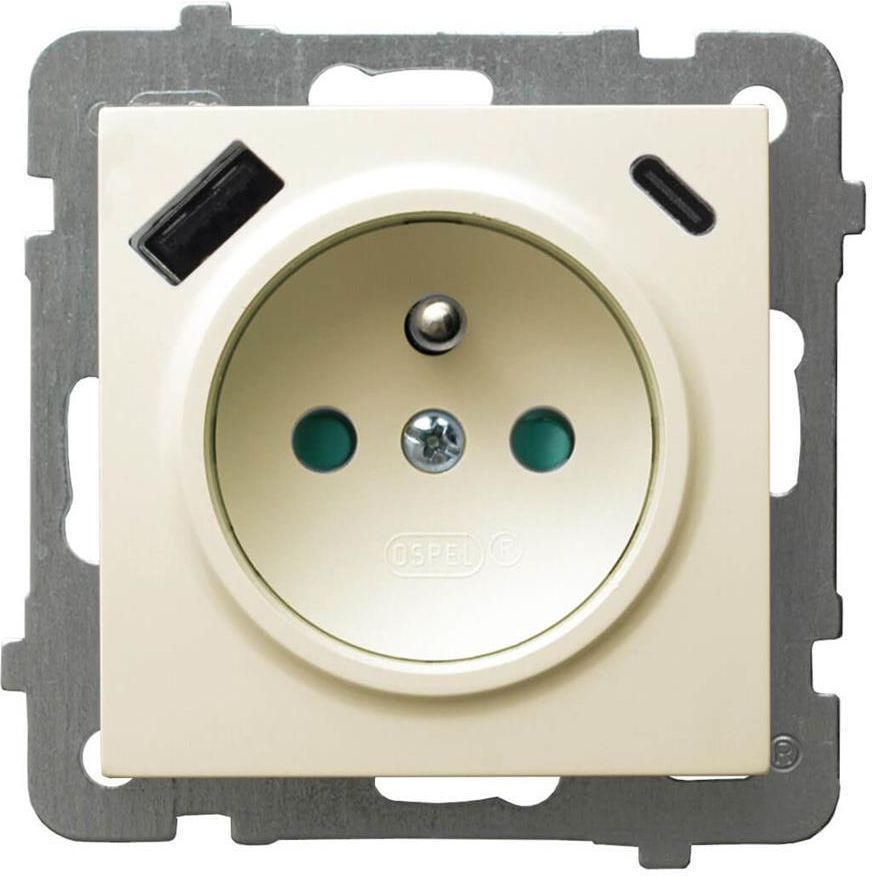 Ospel Gniazdo Pojedyncze Z Ładowarką Usb A+C As Ecru Gp-1Gzpusbac/M/27 Tychy