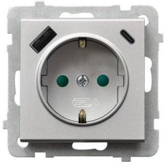 Ospel Pojedyncze Schuko Usb Typu A+C Srebro Mat Gp1Rspusbacm38 Tychy