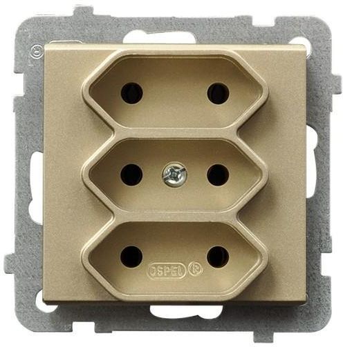 Ospel Sonata Gniazdo Potrójne Euro Z Przesłonami Szampański Złoty Gp-3Rp/M/39 Tychy