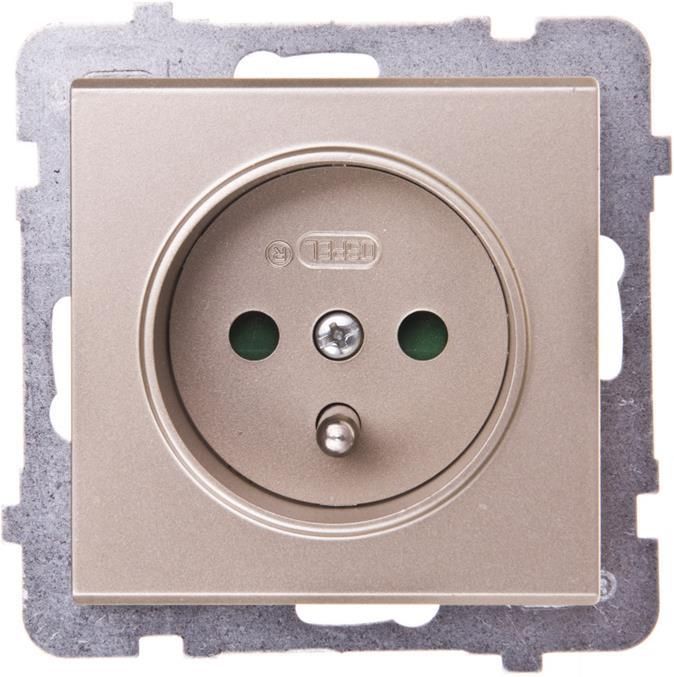 Gniazdo wtykowe pojedyncze SONATA GP-1RZP/m/39 Z uziemieniem i przesłonami torów prądowych Szampański Złoty OSPEL Marka OSPEL to synonim wysokiej jakości. Oferuje bardzo szeroki asortyment sprzętu elektroinstalacyjnego. Rozmaita gama wyłączników i wszelkiego rodzaju gniazd jest w stanie …