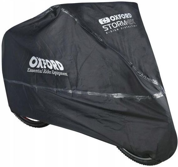 Pokrowiec na motocykl OXFORD STORMEX OXFORD STORMEX to jeden z najlepszych pokrowców motocyklowych dostępnych na rynku, do użytku zewnętrznego oraz wewnątrz. Pokrowiec STORMEX składa się z zewnętrznej, odpornej na przetarcia warstwy poliestru, dzięki czemu STORMEX chroni nie tylko przed warunkami atmosferycznymi, ale także przed uszkodzeniami mechanicznymi (np. otarcia w garażu). Wnętrze wykończone jest miękkim materiałem, który nie powoduje uszkodzeń czy rys na lakierze, a budowa pokrowca zapewnia właściwą wentylację wnętrza (zapobiegając skraplaniu się wody, która może prowadzić do rdzawienia elementów stalowych). OXFORD STORMEX idealnie sprawdzi się na zewnątrz, chroniąc motocykl lub skuter przed silnym wiatrem, deszczem i śniegiem. Pokrowce motocyklowe to także zabezpieczenie przed wścibskim wzrokiem przestępców. Dlaczego OXFORD STORMEX? Od innych modeli pokrowców wyróżnia go kieszonka umożliwiająca umieszczenie ładowarki solarnej oraz patkę do odkrywania tablicy rejestracyjnej. Standardowo w pokrowcu znajduje się ściągacz na dole, zapobiegający podwiewaniu, oraz otwór do montażu blokady antykradzieżowej. Pokrowiec ma niewielkie gabaryty i spakowany jest w poręczną plastikową torebkę. Możliwość zastosowania na zewnątrz i wewnątrz. OXFORD STORMEX w pigułce: Chroni pojazd przed kurzem i wodą. Wodoodporny. Klejone szwy. Odporny na wysokie temperatury. Pasek spinający. Ściągacz na przednie koło. Otwory na zabezpieczenie antykradzieżowe. Wentylacja zapobiega kondensacji wody. Posiada panele odblaskowe. Klasa wodoodporności: 5, ciśnienie słupa wody: 4000 mm. Odporność na przebarwienia: 5. Pokrowiec na rower elektryczny OXFORD STORMEX INDEKS: CC104 Nazwa własna: STORMEX E-BIKE