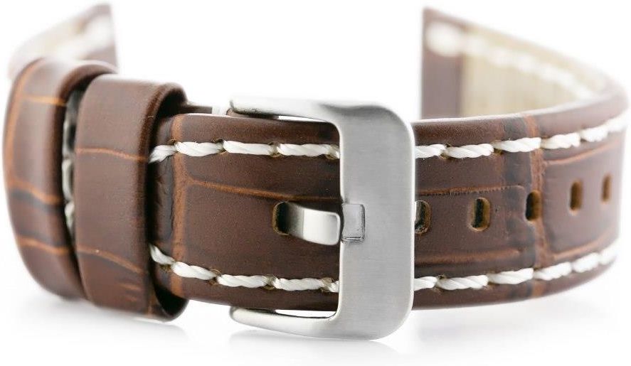 Pacific Pasek skórzany do zegarka W49 - ciemny brąz/białe - 22mm Tychy