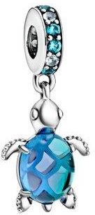 Zawieszka Pandora - Żółw morski Murano 798939C01 Zawieszka Żółw morski Murano została zainspirowana spokojnymi mieszkańcami podmorskich głębin. Jest wysadzana bladoniebieskimi i jasnozielonymi kryształkami i jednym pawim paciorkiem Murano. Srebrny wzór cut-out na brzuszku żółwia został ozdobiony sercem i prześwieca przez szkło Murano, dając piękny efekt skorupy, która mieni się w promieniach słońca. CECHY: - pasuje do: Bransoletki Pandora Moments - kolekcja: Pandora Passions - materiał: srebro 925 - kamień: kryształ WYMIARY: - głębokość: 5,10mm - wysokość: 16,50mm - szerokość: 13,40mm Produkty z zamówienia zapakowane są w oryginalne opakowanie producenta. Oferowane przez nas produkty są w 100% oryginalnymi produktami marki PANDORA. Do każdego zamówienia , otrzymają Państwo: certyfikat autentyczności* tylko na życzenie klienta oraz w zależności od dostępności w centrali torebeczkę prezentową ozdobne opakowanie producenta Pamiętaj! Oryginalne produkty marki Pandora, wykonane są z największą starannością. W zależności od ich budowy posiadają oznaczenia - S925 ALE i/lub logotyp PANDORA. Oznaczenie te są czasami starannie ukryte np. wewnątrz produktu, aby utrudnić jego podrobienie. Producent: PANDORA Numer katalogowy: 798939C01 Kupując u nas, masz pewność, że produkt jest oryginalny oraz posiada oznaczenia producenta . Zamówienie otrzymasz w oryginalnym opakowaniu producenta . Jeśli Twoje zamówienie składa się z prezentów dla kilku osób, każdy produkt możemy zapakować oddzielnie. Wystarczy, że dopiszesz taką prośbę w komentarzu do zamówienia.