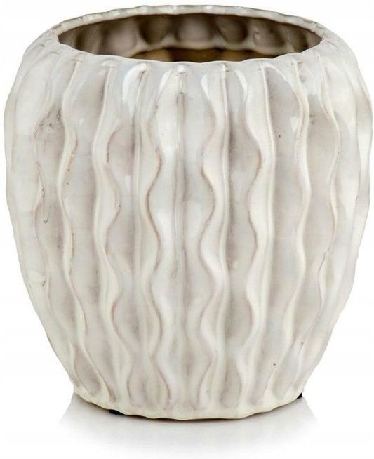 Ceramicznaosłonka marki Polnix to subtelne połączenie klasyki i dekoracyjnego wykończenia, które doskonale odnajdzie się w niemal każdym wnętrzu – od nowoczesnych aranżacji po przytulne, rustykalne przestrzenie. Okrągły, lekko pękaty kształt nadaje jej miękkości wizualnej i sprawia, że rośliny prezentują się w niej wyjątkowo efektownie. Powierzchnię zdobi ozdobne tłoczenie pokryte białym szkliwem z delikatnymi przetarciami, które w błyszczącym wykończeniu pięknie odbija światło i dodaje całości elegancji. Neutralna kolorystyka sprawia, że osłonka łatwo komponuje się z zielenią roślin oraz z różnymi stylami wystroju – nie dominuje przestrzeni, lecz ją harmonijnie uzupełnia. Na spodzie znajdują się trzy filcowe stopki, które chronią blaty, parapety i meble przed zarysowaniem oraz zwiększają stabilność ustawienia. Brak otworu drenażowego czyni ją idealną osłonką na plastikowe doniczki produkcyjne lub rozwiązaniem dla roślin, które nie wymagają bezpośredniego odpływu wody. Wymiary: wysokość – 19,5 cm średnica górna – 19 cm Model jest mrozoodporny, dlatego sprawdzi się zarówno we wnętrzach, jak i na balkonie czy tarasie. Każda osłonka powstaje ręcznie z ceramiki szkliwionej, co oznacza drobne różnice w odcieniu, strukturze szkliwa lub rozmieszczeniu przetarć. To naturalny efekt rzemieślniczej produkcji, który nadaje każdej sztuce indywidualny i niepowtarzalny charakter. Wzór: 77.706.19 biała Produkt 1 x osłonka Wymiary wysokość 19,5 cm średnica górna z rantem 19 cm średnica górna bez rantu 13 cm średnica podstawy 12 cm średnica podstawy wewnątrz 9,5 cm wysokość wnętrzna 18 cm waga 1,884 kg Materiał ceramika Użytkowanie do przechowywania kwiatów
