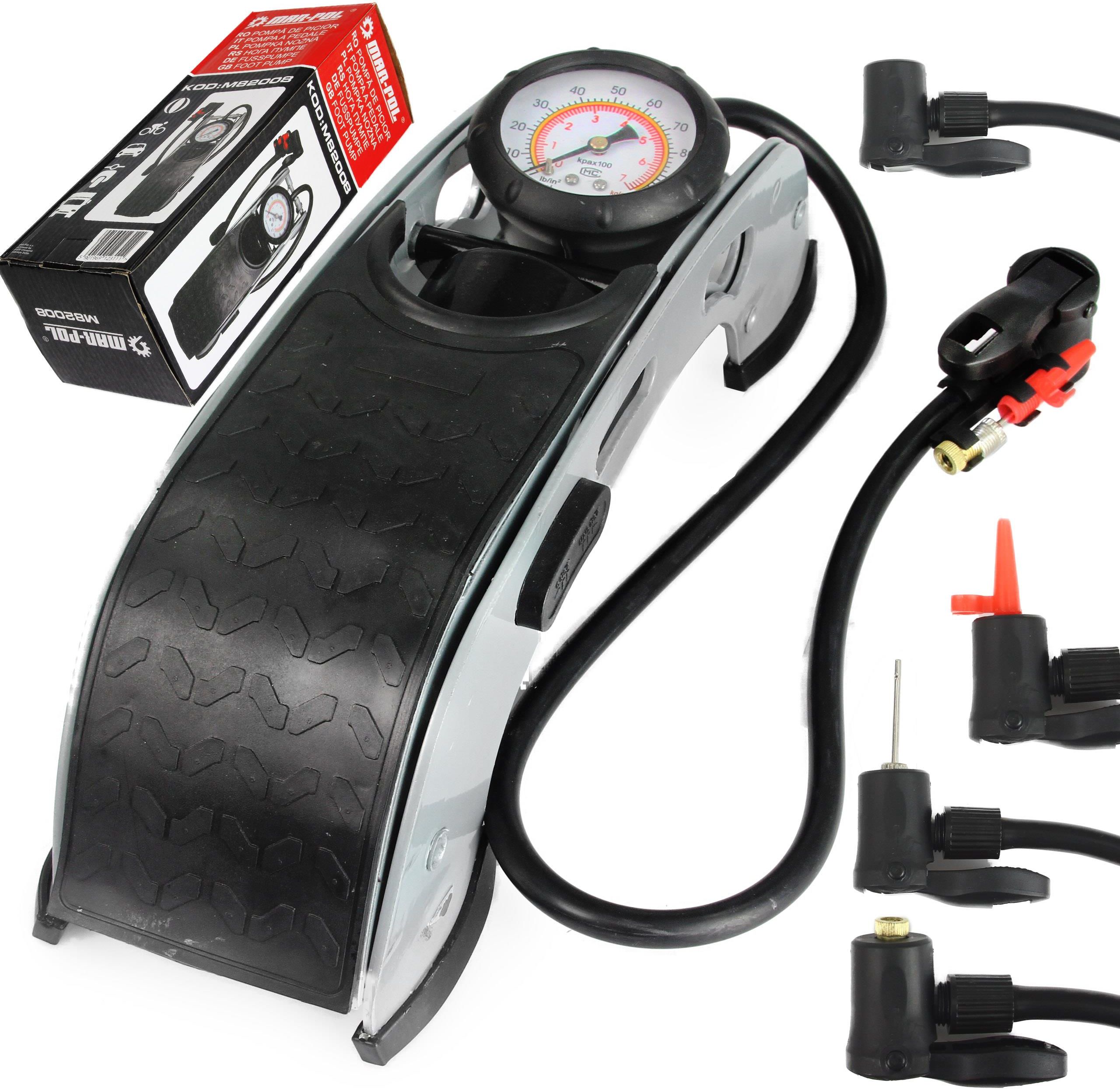 Pompka rowerowa samochodowa zestaw końcówki M82008 Pompki i kompresory do kół to niezwykle przydatne narzędzia, które mogą uratować nas w nieoczekiwanych sytuacjach. Są one nieodzowne w każdym garażu i bagażniku samochodowym, umożliwiając szybkie i efektywne napompowanie kół, piłek, materacy czy innych przedmiotów. Wśród różnych typów urządzeń dostępnych na rynku, warto zwrócić uwagę na produkty, które wyróżniają się funkcjonalnością i łatwością użytkowania. Funkcjonalność i wszechstronność Pompka rowerowa samochodowa zestaw końcówki M82008 firmy Mar-Pol to niezastąpione narzędzie w każdej awaryjnej sytuacji. Dzięki niej szybko i bez wysiłku napompujesz koło w samochodzie, a także sprawdzisz ciśnienie w oponach. To urządzenie jest idealne do codziennego użytku, zarówno w domowym garażu, jak i w podróży. Typ urządzenia Pompka nożna z manometrem to rozwiązanie, które zapewnia precyzyjne pompowanie i kontrolę ciśnienia. Manometr pozwala na dokładne monitorowanie ciśnienia, co jest kluczowe dla bezpieczeństwa jazdy. Dzięki swojej konstrukcji pompka jest łatwa w użyciu i wygodna do przechowywania. Materiał wykonania Wysoka jakość wykonania to jedna z cech wyróżniających pompki rowerowej samochodowej zestaw końcówki M82008. Urządzenie zostało wykonane z wytrzymałego metalu, co zapewnia jego długą żywotność i odporność na uszkodzenia mechaniczne. Solidna konstrukcja gwarantuje niezawodność nawet w trudnych warunkach. Zakres ciśnienia Kolejnym istotnym parametrem jest zakres ciśnienia, który w przypadku tej pompki wynosi 0-7 bar. Dzięki temu urządzenie jest wszechstronne i może być używane do różnych zastosowań, od pompowania kół samochodowych po napełnianie piłek czy materacy. Długość przewodu i węża Długość przewodu i węża ma znaczenie dla wygody użytkowania. Pompka mar-pol M82008 wyposażona jest w wąż o długości około 60 cm, co umożliwia swobodne operowanie urządzeniem i łatwy dostęp do wszystkich kół pojazdu. Zalety użytkowania pompki mar-pol M82008 Dzięki dołączonym końcówkom szybko i bez wysiłku napompujesz różnorodne przedmioty. Oto niektóre zalety tego urządzenia: dzięki wytrzymałemu metalowi zapewnia długą żywotność, posiada manometr umożliwiający precyzyjne monitorowanie ciśnienia, w zestawie znajdują się 3 specjalne końcówki do pompowania, wąż o długości 60 cm pozwala na wygodne użytkowanie, kompaktowe wymiary (30 x 13,5 cm) sprawiają, że jest łatwa do przechowywania.