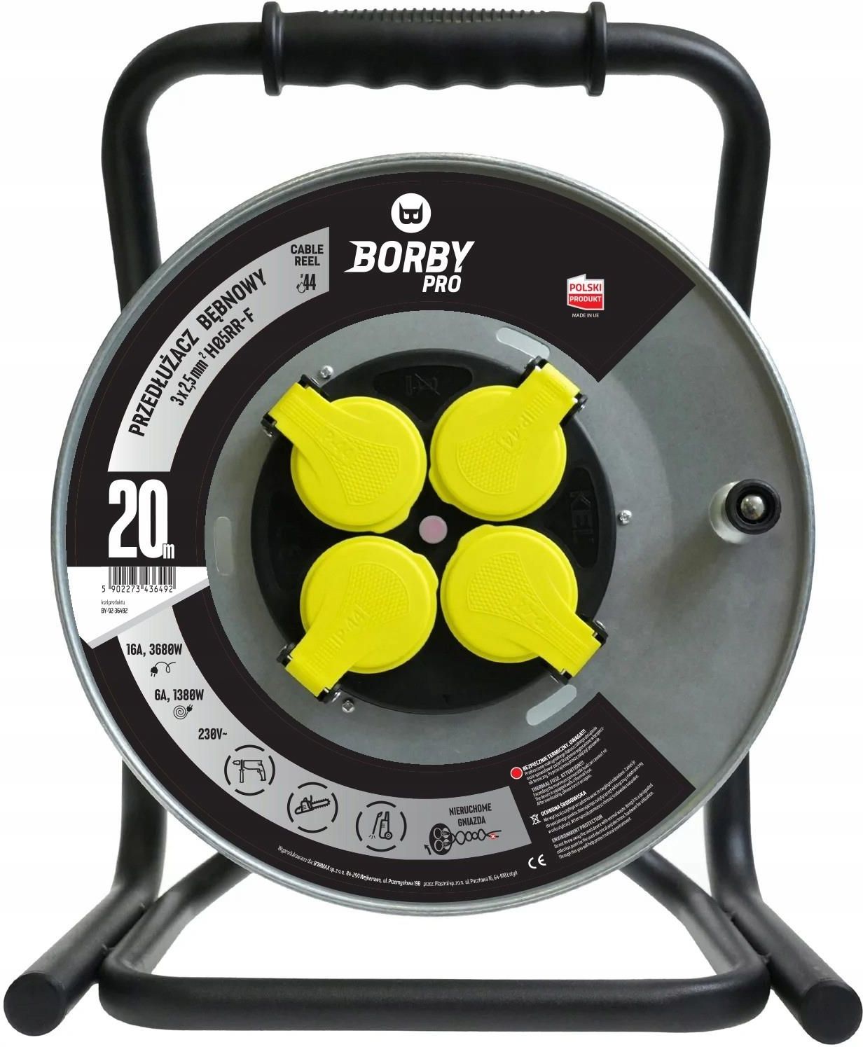 Przedłużacz bębnowy Metal-guma 20m 3x2,5mm Borby BY-02-36492 1778429573 Tychy