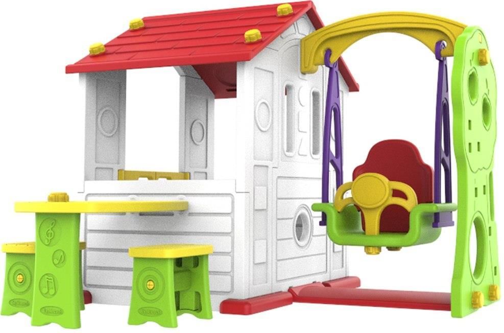 Domek ogrodowy 3w1 dla dzieci Czerwony dach ✅ Parametry: ✅ Parametry dodatkowe: ✅ Symbol: ZOG.CHD-531 Opis: Specyfikacja Domek ogrodowy 3w1 Wszystkie elementy domku wykonane są z wysokiej jakości materiału HDPE. Jest to polietylen o dużej gęstości, wynoszącej od 0,942 do 0,965 g/cm3. HDPE jest materiałem bardziej elastycznym i odpornym na uszkodzenia mechaniczne w porównaniu z materiałami wykorzystywanymi w innych tego typu konstrukcjach. Wszystkie ścianki jak i elementy składowe wykonane są z podwójnej warstwy plastiku. Daje to dodatkowo możliwość wypełnienia ścianek wkładem typu piasek, kruszywo zapewniając stabilność konstrukcji. Duże elementy składowe ułatwiają montaż. Opis duża przestrzeń wewnątrz domku zapewniająca swobodę zabawy, duże otwierane na oścież drzwiczki, bezpieczna dwuwarstwowa huśtawka, bezpieczna dwuwarstwowa konstrukcja stolika i krzeseł konstrukcja pozwala na demontaż ogródka i dobudowanie ścianki domku. Wymiary wysokość domku 128,5 cm, długość całkowita 164,5 cm, szerokość domku 100,4 cm, szerokość huśtawki 83,5 cm, wysokość płotka 50 cm, szerokość okien 80 cm, rozmiary wejścia 45,8 cm, waga domku 24 kg,
