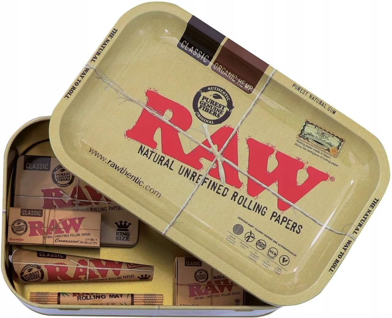 RAW Munchies Tin - Metalowe pudełko z tacką do suszu 28x18x9 cm Praktyczne pudełko z metalową tacką do skręcania RAW Munchies Tin. Idealne do przechowywania bibułek, filtrów i innych akcesoriów do jointów. Solidna konstrukcja i szczelne zamknięcie gwarantują bezpieczeństwo i dyskrecję. RAW MUNCHIES BOX to Twój niezbędnik do skręcania - sprawdź to! Dlaczego warto wybrać RAW MUNCHIES BOX? - Perfekcyjny porządek: Dzięki przemyślanej konstrukcji, w pudełku z łatwością uporządkujesz bibułki, filtry, młynek, a nawet dodatkowe akcesoria. Wszystko będzie miało swoje miejsce, a Ty zaoszczędzisz czas na poszukiwania. - Pokrywa w formie tacki do skręcania: Metalowa tacka jest nie tylko praktyczna, ale także estetyczna. Dzięki szczelnemu zamknięciu, perfekcyjnie przylega do pudełka, zapobiegając rozsypywaniu się zawartości. - Solidna konstrukcja: Wykonany z wytrzymałego metalu, RAW MUNCHIES BOX jest odporny na uszkodzenia i posłuży Ci przez długi czas. - Stylowy design: Minimalistyczny design i charakterystyczne logo RAW na pokrywie. RAW MUNCHIES BOX to coś więcej niż zwykłe pudełko. To organizer, który pozwoli Ci utrzymać porządek i mieć wszystkie niezbędne akcesoria do jointów zawsze pod ręką. Wykonany z najwyższej jakości metalu, ten solidny i trwały pojemnik stanie się nieodłącznym elementem Twojego wyposażenia. POstaw na RAW Munchies BOX! Cechy RAW Munchies Box: - wykonany z metalu - z pokrywą w formie tacki - duży rozmiar - sygnowany logiem RAW Wymiary pudełka: - długość: 28 cm - szerokość: 18 cm - wysokość: 9 cm