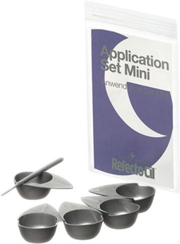 RefectoCil Application Set Mini to wysokiej jakości akcesoria do aplikacji henny. Pozwalające na szybkie, łatwe i precyzyjne nakładanie henny* RefectoCil. Pałeczki wyposażone są w grzebień umożliwiając wyjątkowo czystą i precyzyjną pracę podczas koloryzacji brwi i rzęs. Dodatkowo są bardzo trwałe i odporne na działanie środków chemicznych. Miseczka z kolei posiada gładką powierzchnię, która umożliwia łatwe i szybkie czyszczenie. Jej kształt łatwe i bezpieczne umieszczanie w nich poszczególnych produktów. Opakowanie: 5 szt. miseczek kosmetycznych + 5 szt. pałeczek do aplikacji