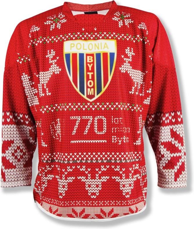 Replika bluzy meczowej Świąteczna Polonia Bytom M Właściwości Replika bluzy meczowej -Świąteczna Polonia Bytom Replika świątecznej bluzy hokejowej Polonii Bytom to idealne połączenie sportowego stylu i bożonarodzeniowej atmosfery. Wyjątkowe wzory, takie jak renifery i geometryczne zdobienia, doskonale współgrają z czerwonym kolorem bluzy i herbem Polonii Bytom na piersi. Motyw 770 lat miasta Bytom podkreśla historyczny charakter produktu, czyniąc go idealnym wyborem dla kibiców drużyny. Główne cechy: Wyjątkowy design: Świąteczne wzory i motywy nawiązujące do jubileuszu 770-lecia Bytomia. oddychający, szybkoschnący i odporny na promienie UV. Bluza świąteczna Polonii Bytom to doskonały pomysł na prezent dla fana hokeja, który chce kibicować swojej drużynie w wyjątkowym stylu, jednocześnie celebrując magię świąt! Materiał 100% poliester;