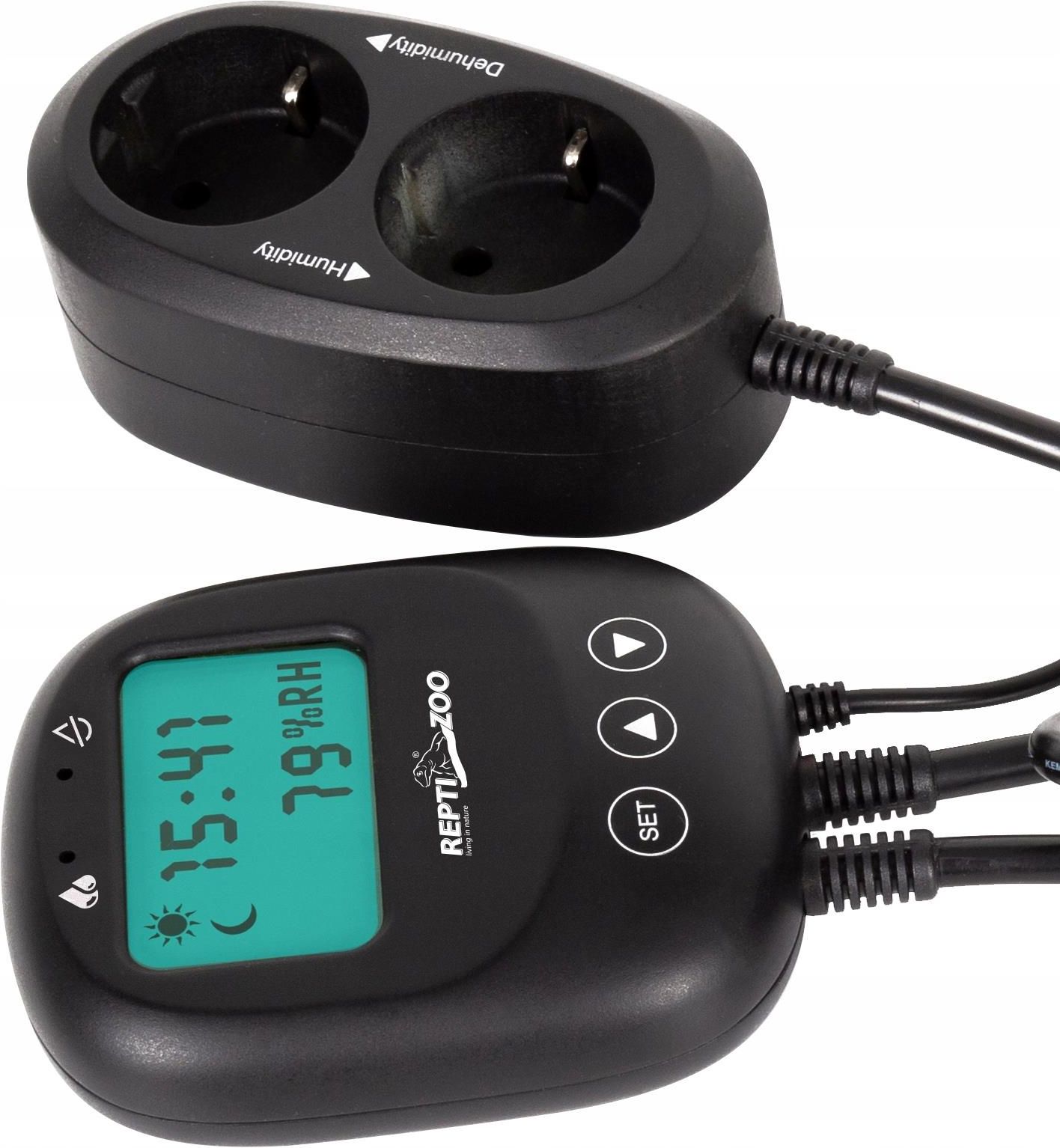 Higrostat elektroniczny przeznaczony do terrarium. Posiada możliwość oddzielnego programowania na dzień i noc. Dodatkowo ma dwa wejścia (gniazdka) odpowiednio na urządzenie nawadniające i osuszające. - dzień / noc - nawilżanie i osuszanie - mikroprocesorowy (dokładny) - łatwe programowanie - programowany dokładnością do 1% Higrostat: To istotny element każdego terrarium. Raz zaprogramowany stale czuwa na minimalną i maksymalną wilgotnością w Twoim zbiorniku. Dokładność do 1%, oddzielne wejścia na nawilżanie i osuszanie, oddzielne ustawienia na dzień i na noc do tego możliwość programowania histerezy i alarm to wszystko sprawia, że nie będziesz się już musiał więcej martwić o wilgotność w terrarium. Łatwe programowanie: Odbywa się za pomocą trzech dotykowych przycisków. Przerzucaj pomiędzy funkcjami i strzałkami ustal wilgotność, czas, początek dnia nocy itd. Programowanie całkowite zajmie Ci około 2 minuty. Co mogę podłączyć? Każde urządzenie nawadniające takie jak: - zamgławiacz - wodospad - zraszacz Każde urządzenie osuszające - wentylatory Dane techniczne: - długość przewodu z sondą: 200cm - długość przewodu zasilającego: 150cm (wtyczka UE z uziemieniem) - długość przewodu do gniazdek: 200cm (gniazdka UE z uziemieniem bez bolca) - dokładność odczytu temperatury i programowania: 1% - dokładność (maksymalny błąd w działaniu higrostatu) działania 3% - zakres działania: od 20% do 95% - częstotliwość pomiaru temperatury: 5sek. - maksymalne obciążenie 1200W (2x600W) - wymiary części z wyświetlaczem: 107x88x38mm - wymiary części z gniazdkami: 110x63x44mm - wymiary sondy: 15x12x40mm NatiAnimals – Artykuły akwarystyczne, terrarystyczne i zoologiczne od renomowanych producentów Sklep internetowy NatiAnimals oferuje szeroki wybór artykułów akwarystycznych, terrarystycznych i zoologicznych od uznanych producentów, które zapewnią Twoim zwierzętom optymalne warunki życia oraz doskonałą pielęgnację. Artykuły akwarystyczne – Wszystko, czego potrzebujesz do swojego akwarium W NatiAnimals znajdziesz kompleksowe wyposażenie do akwarium, takie jak filtry, oświetlenie, pokarmy, rośliny oraz ozdoby, które zapewnią idealne warunki dla ryb i innych wodnych zwierząt. Nasze produkty pochodzą od renomowanych marek, gwarantujących najwyższą jakość. Akcesoria terrarystyczne – Zadbaj o swoje egzotyczne zwierzęta Oferujemy również szeroką gamę produktów terrarystycznych, w tym terraria, oświetlenie, systemy grzewcze oraz karmy dla gadów, płazów i innych egzotycznych zwierząt. Nasze akcesoria pomagają w stworzeniu zdrowego i bezpiecznego środowiska dla Twoich podopiecznych. Artykuły zoologiczne – Kompleksowa opieka nad zwierzętami domowymi W NatiAnimals znajdziesz wszystko, czego potrzebujesz dla swoich zwierząt domowych – od karm i suplementów, po akcesoria do pielęgnacji i zabawki. Dzięki produktom od renomowanych producentów możesz zapewnić swojemu pupilowi najlepszą opiekę. NatiAnimals – Twój zaufany sklep dla miłośników zwierząt Odkryj szeroką ofertę artykułów akwarystycznych, terrarystycznych i zoologicznych w NatiAnimals i zapewnij swoim zwierzętom komfort oraz zdrowie. Wybierz sprawdzone produkty od renomowanych marek, które pokochają zarówno Ty, jak i Twoje zwierzaki!