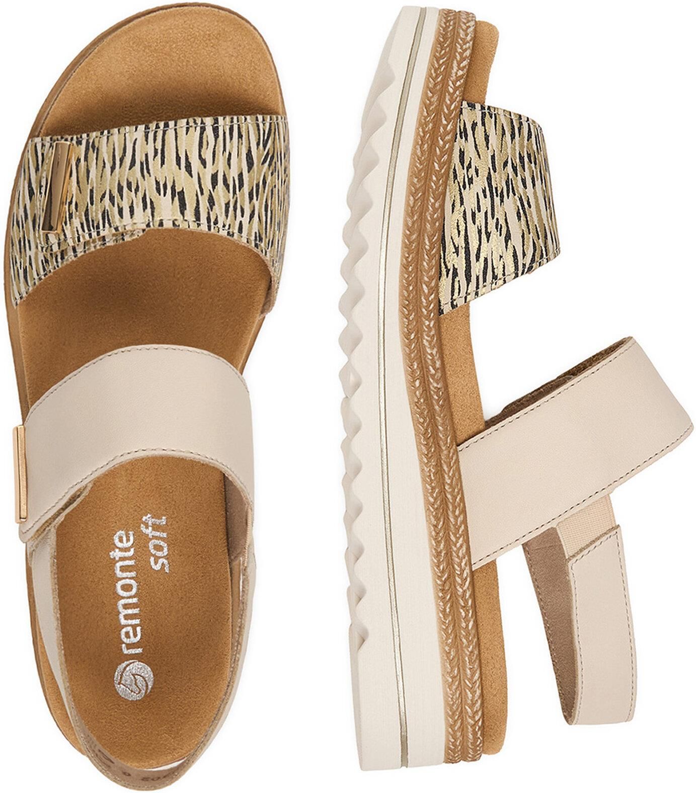 Odkryj niezrównany komfort w stylowym wydaniu z damskimi sandałami marki Remonte. Wykonane z wysokogatunkowej skóry, gwarantują trwałość i doskonałe dopasowanie do stopy. Dzięki technologii Remonte Soft, sandały te oferują wyjątkową miękkość, elastyczność oraz doskonałą amortyzację, co sprawia, że każdy krok staje się przyjemnością. Zapinanie na rzep ułatwia szybkie zakładanie i zdejmowanie butów oraz pozwala idealnie dopasować je do stopy, zapewniając stabilność i wygodę przez cały dzień. Gruba podeszwa nie tylko dodaje charakteru, ale również zapewnia solidne wsparcie i komfort podczas długiego noszenia. Dodatkowym atutem jest gumowy klin w cholewce, który zwiększa elastyczność i wygodę użytkowania. Te sandały to idealny wybór na letnie dni, łącząc praktyczność z niepowtarzalnym stylem. Postaw na jakość, komfort i modny design – uzupełnij swoją garderobę o model, który sprosta Twoim oczekiwaniom!