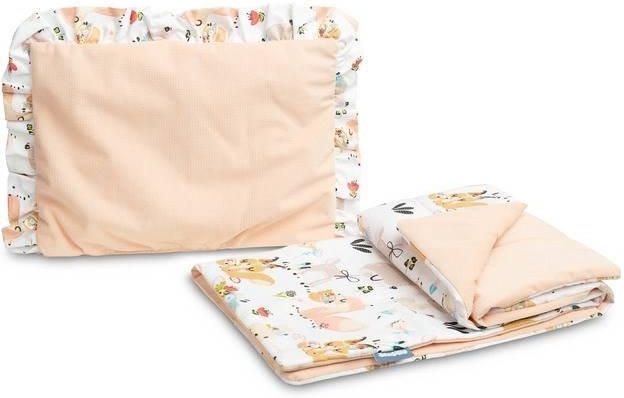 ND33_SILLO-46030 KOMPLET DO WOZKA VELVET Z FALBAN BENTOM ND33_SILLO-46030 KOMPLET DO WOZKA VELVET Z FALBANKA PIKNIK BRZOSKWINIOWY Komplet do wózka velvet z falbanką to atrakcyjna pozycja w gamie produktów Sensillo. W skład kompletu wchodzi śliczna poduszka falbanką oraz kołderka z delikatnym wypełnieniem. Dwustronny komplet jest wykonany z wysokiej jakości materiałów ? kolorowej bawełny oraz bardzo przyjemnej tkaniny velvet, która utuli każdego bobasa. Komplet idealnie sprawdza się w wózku, łóżeczku, kołysce czy jako mata dla maluszka. Sama poduszka może służyć jako przytulanka. Najważniejsze cechy: Komplet idealny do wózka, sprawdzi się również w domu Wykonany z najwyższej jakości tkaniny velvet oraz 100% bawełny Wymiary poduszki: 34x24 cm (+/- 2cm) ? wymiar bez falbanki Wymiary kocyka: 56x76 cm (+/- 2cm) Wypełnienie stanowi warstwa antyalergicznej włókniny silikonowej Produkt polski Skład: Poszewka: 100% bawełna/100% poliester Wkład: 100% poliester Sposób konserwacji: Prać ręcznie w temp. max. 30 stopni Nie wybielać Nie czyścić chemicznie Nie suszyć w suszarce. Nie wirować Prasować tylko po stronie bawełny, przy temp. maks. 110 stopni