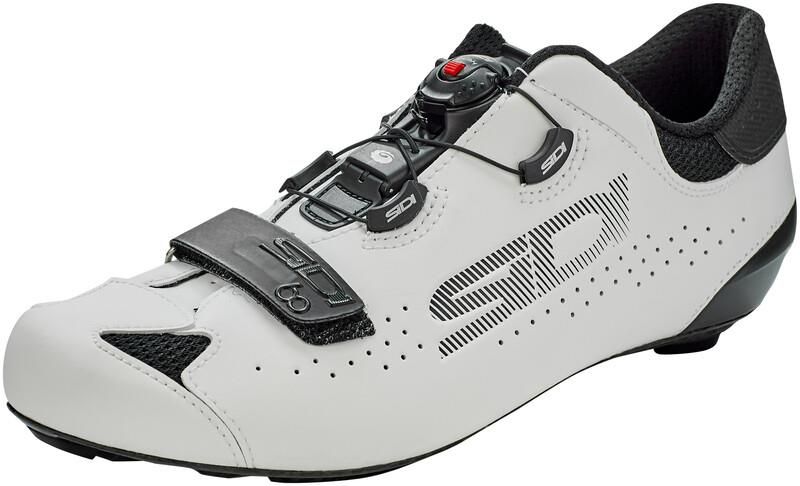 Przeznaczenie: Rower szosowy / Cyclocross; Sezon: Cały rok; Rodzaj butów rowerowych: dla pedałów platformowych rower szosowy; Montaż bloków: dla 3-otworowych zatrzasków; Materiał wierzchni: Microfiber Techpro; Rodzaj podeszwy: twarde; Podeszwa: włókno węglowe; System zamykający: System szybkiego sznurowania, zapięcie na rzepy; Wiązanie: Tecno 4; Zawartość / zakres dostawy: 1 para SIDI Sześćdziesiąt butów; Waga na parę: 520 g; Zmierzony rozmiar: 42; Informaacje dotyczące rozmiaru: Rozmiar jest mniejszy w porównaniu do standardowej rozmiarówki; odpowiednia szerokość stopy: wąska; Pasujące: ścisłe dopasowanie; Szczegóły: niezwykle sztywny, ręcznie wykonana podeszwa węglowa do bezpośredniego przenoszenia mocy, Podeszwa z przewietrznikiem węglowym: regulowany dopływ powietrza w przedniej części podeszwy, Sidi edycja jubileuszowa 60 lat, Zapięcia na rzepy ze zintegrowanym uzębieniem dla jeszcze lepszego trzymania, Szybkie sznurowanie można poluzować i złożyć do przodu za pomocą tylko jednego uchwytu, Zamknięcie Tecno-4 pozostawia mm-precyzyjne, bardzo równomierne dostosowanie do
