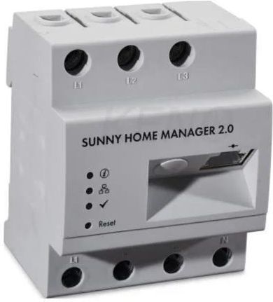 Centrala SMA Sunny Home Manager 2.0 SMA Tym razem mamy dla Państwa centralę SMA Sunny Home Manager 2.0. SMA Sunny Home Manager 2.0 to wyjątkowy produkt o konkurencyjnych parametrach, które z pewnością spełnią wymagania nawet najbardziej wymagającego klienta. Jego wyjątkowe cechy to przede wszystkim: - Wysoka wydajność, - Precyzyjne działanie, - Łatwy w obsłudze. Centrala w kompleksowy sposób zarządza energią w domu, przyczyniając się do oszczędności, a także zwiększenia komfortu życia. Produkt idealny dla wszystkich, którzy pragną wykorzystywać energię słoneczną w domu, aby zaoszczędzić na rachunkach za prąd. Dzięki temu, zyskują oni niezależność energetyczną, co dodatkowo wpływa na zdrowie środowiska naturalnego. Łączność: WLAN / Ethernet LAN Maksymalna liczba jednocześnie podłączonych urządzeń: 24 Dokładność pomiaru: 1% Maksymalna liczba urządzeń objętych zarządzaniem energią: 12 Typ montażu: Szyna DIN Opcje montażu: Szafa sterownicza lub licznikowa Diody LED: Sygnalizacja Kolor produktu: Szary Minimalne zużycie energii: 3 W Częstotliwość: 50 - 60 Hz Napięcie znamionowe: 110 V / 230 V / 400 V Maksymalny prąd operacyjny na fazę: 63 A Obsługiwane połączenia przekrojowe: 10 - 16 mm² Prąd znamionowy: 5 A Wysokość produktu: 88 mm Głębokość produktu: 65 mm Szerokość produktu: 70 mm Waga produktu: 300 g Klasa ochrony: II Stopień ochrony IP: IP20 Zakres temperatur (eksploatacja): -25 - 40 °C Dopuszczalna wysokość (n.p.m.): 0 - 2000 m Dopuszczalna wilgotność względna: 5 - 90% Zakres temperatur (przechowywanie): -25 - 70 °C