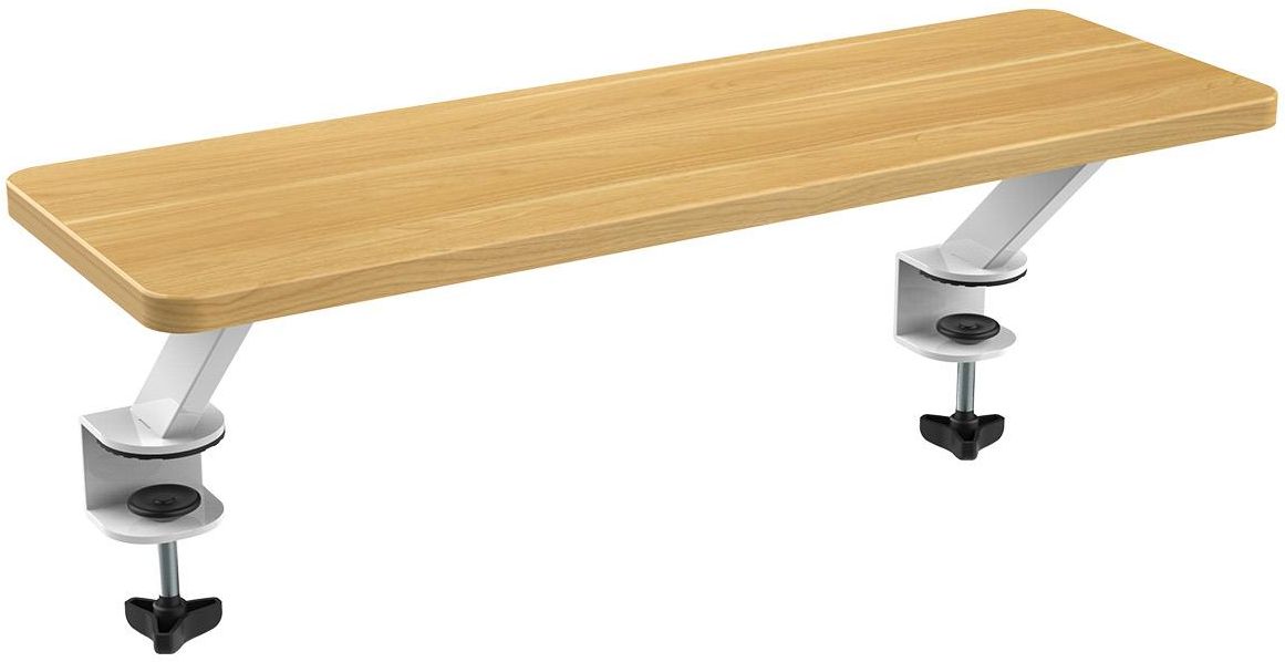 Przedmiotem sprzedaży jest: SPB114L; Nadstawka biurkowa Spacetronik SPB-114L. Praktyczna i stylowa półka do biurka 60x20 cm Wysokiej jakości półka pod monitor Spacetronik SPB-114, która podnosi ekran o 13,4 cm i zapewnia bardziej ergonomiczną i wygodną konfigurację stanowiska pracy. Masz za mało miejsca na biurku? Półka do biurka nadaje się również do laptopa oraz przechowywania dowolnych przedmiotów. Dzięki półce zyskasz dodatkową przestrzeń na blacie, niezależnie w jaki sposób zdecydujesz się ją wykorzystać. Solidna i łatwa w instalacji Wykonana z płyty meblowej oraz stalowych uchwytów zaciskowych, wyposażonych w dodatkową podkładkę gumową, by nie uszkodzić blatu. Banalny montaż - wystarczy odkręcić, a następnie wsunąć na krawędź blatu i dokręcić. Półka na biurko Spacetronik przeznaczona jest dla blatów o grubości od 1,5 do 5 cm. Na półce można umieścić przedmioty o łącznej wadze nieprzekraczającej 15 kg. Gotowa w dwie minuty Półka pod monitor będzie gotowa do użycia w zaledwie dwie minuty. Wystarczy przykręcić uchwyty do płyty meblowej za pomocą dołączonych do zestawu śrub. SPB-114 świetnie sprawdza się jako rozbudowa aktualnego ergonomicznego biurka. Cechy produktu - Nośność: 15 kg - Wymiary: 600 x 200 x 16 mm - Wysokość (od krawędzi blatu): 134 mm - Zalecana grubość blatu: 15-50 mm - Materiał: płyta wiórowa (dekor klon) + stal