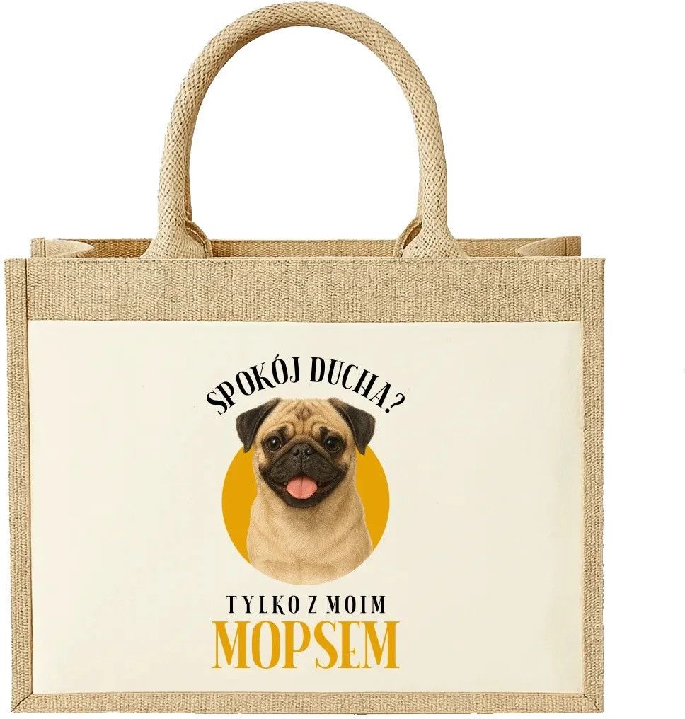 Spokój ducha? Tylko z moim mopsem - Torba z juty na prezent Tychy