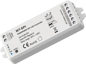 Sterownik LED SPI (WiFi) - do taśm cyfrowych LED - 8A 5-24V DC - WT-SPI, to bezprzewodowy sterownik LED w formie autonomicznego kontrolera LED, który umożliwia sterowanie oświetleniem składającym się z cyfrowego źródła światła LED (np. taśma LED cyfrowa) bez pomocy dodatkowych urządzeń. Wszystko za sprawą bezprzewodowej komunikacji poprzez sieć WiFi, która wykorzystuje do tego aplikacje Tuya Smart. Sterownik cyfrowy WT-SPI umożliwia kontrolę maksymalnie do 1000 pixeli, które nie przekraczają sumarycznie 8A. Sterownik cechuje się również szerokim zakresem napięcia wejściowego oraz wyjściowego rzędu 5-24V DC. Sterownik cyfrowy SPI został wykonany z wysokiej jakości komponentów oraz posiada pięcioletnią gwarancję. Sterownik WT-SPI charakteryzuje się możliwością współpracy zarówno z jednokolorowymi taśmami cyfrowymi LED jak również cyfrowymi taśmami RGB/RGB+W. Wszystko za sprawą wysokiej kompatybilności układów scalonych, z jakimi może współpracować. Posiada w swojej budowie kilkadziesiąt gotowych dynamicznych programów, które możemy w pełni indywidualizować. Zastosowanie do instalacji: SPI jednokolorowych MONO opartych o system cyfrowy SPI wielokolorowych RGB/RGB+W opartych o system cyfrowy Cechy sterownika taśm cyfrowych LED - WT-SPI Dedykowany do cyfrowych taśm LED Obsługa maksymalnie do 1000 pixeli Zakres napięcia wejściowego/wyjściowego 5-24V Dopuszczalny maksymalny prąd o wartości 8A Bezprzewodowa komunikacji poprzez sieć WiFi Współpraca z aplikacją Tuya Smart Duża ilość współpracujących układów cyfrowych Możliwość stworzenia własnego programu dynamicznego Kilkadziesiąt wbudowanych programów dynamicznych Temperatura pracy urządzenia od -30 do 55 stopni Wysoka jakość zastosowanych komponentów 5 letnia gwarancja Poznaj serie produktu - Sterowniki cyfrowe SPI Seria sterowników SPI, to urządzenia do kontroli wielokolorowych instalacji led za pomocą sterowników wykorzystujących na wyjściu sygnał cyfrowy SPI. Sterowniki cyfrowe LED charakteryzują się możliwością wysterowania każdej z sekcji a nawet diody led znajdującej się na taśmie LED z uwagi na zastosowanie w nich niewielkiego układu scalonego. Producenci oświetlenia cyfrowego wykorzystują różnego typu układy, które charakteryzują się indywidualnymi właściwościami. Zastosowanie cyfrowego oświetlenia LED w znaczący sposób rozwinie naszą instalację LED. Odkryj cechy sterownika cyfrowego WT-SPI