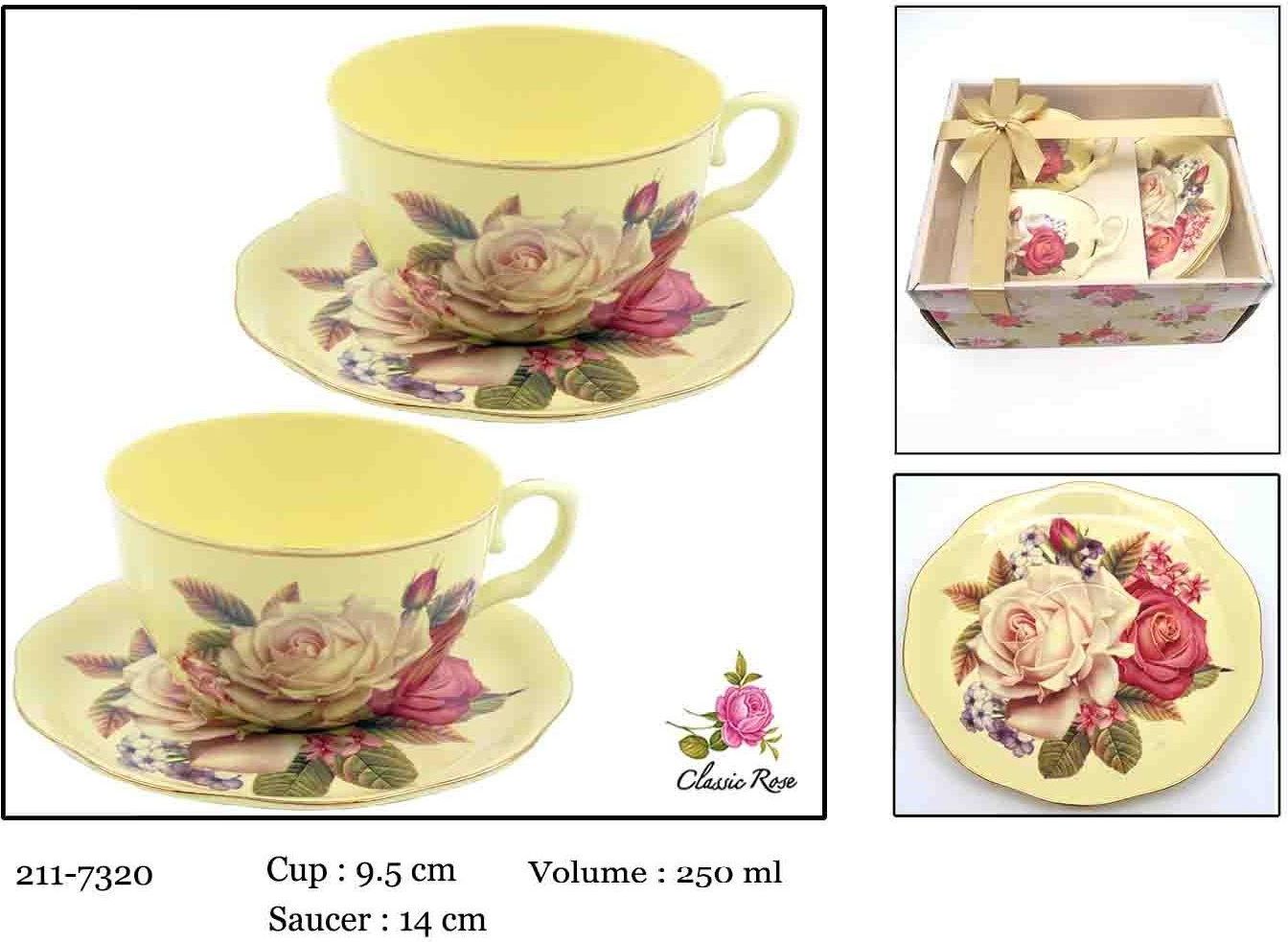 2 FILIŻANKI ZE SPODKAMI PORCELANA CIENKOŚCIENNA (7559) Zestaw dwóch filiżanek ze spodkami wykonanych z wysokiej jakości porcelany cienkościennej (bardzo cienka i lekka). Filiżanki zdobione motywem róż, zapakowane w prezentowe pudełko. Produkt oryginalny - dopuszczony do kontaktu z żywnością. Wzór: róże Produkt 2 x filiżanka 2 x spodek 1 x ozdobne pudełko Wymiary średnica filiżanki: 9,7 cm wysokość filiżanki: 6 cm średnica spodka: 14,3 cm pojemność: 250 ml (pojemność liczona po rant filiżanki) waga filiżanki: 85 gram waga spodka: 135 gram Materiał dobrej jakości porcelana Użytkowanie dopuszczone do kontaktu z żywnością