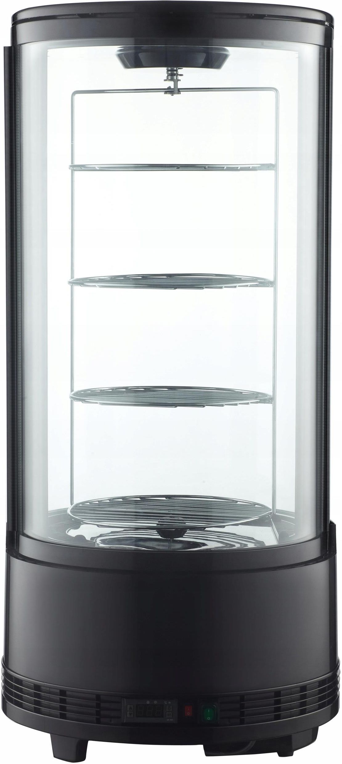 Witryna chłodnicza nastawna z oświetleniem LED, okrągła, 73 l, ⌀504x1060 mm, Technica, Cold Line Air Witryna chłodnicza Technica Cold Line to eleganckie, okrągłe urządzenie chłodnicze zaprojektowane z myślą o profesjonalnych przestrzeniach gastronomicznych. Dzięki kompaktowym wymiarom, okrągłej obudowie i podwójnym szybom, idealnie nadaje się do eksponowania napojów, deserów, ciast i innych produktów wymagających chłodzenia. Witryna wyróżnia się nie tylko estetyką, ale także funkcjonalnością, oferując obracającą się półkę oraz nowoczesne oświetlenie LED, które dodatkowo podkreśla wyeksponowane produkty. Specyfikacja produktu - 466073 Średnica: 504 mm. Wysokość: 1060 mm. Pojemność: 73 l. Moc całkowita: 0.19 kW. Napięcie: 220-240 V. Temperatura minimalna: 0 °C. Temperatura maksymalna: 10 °C. Ilość półek: 4 szt. Ilość drzwi: 1 szt. Materiał: Tworzywo sztuczne, szkło. Rodzaj chłodzenia: Wymuszony obieg powietrza. Rodzaj rozmrażania: Automatyczne. Czynnik chłodniczy: R600a Klasa klimatyczna: 4. Cechy charakterystyczne Okrągła obudowa: Witryna ma unikalną, okrągłą formę, co nadaje jej elegancki wygląd i wyróżnia ją na tle innych urządzeń chłodniczych. Podwójne szyby: Witryna wyposażona jest w podwójne szyby, co poprawia izolację termiczną i zapobiega utracie chłodzenia. Automatycznie obracająca się półka: Witryna posiada półkę, która obraca się automatycznie, co umożliwia równomierne eksponowanie produktów oraz ułatwia dostęp do wszystkich przechowywanych artykułów. Wytrzymałe chromowane półki: Witryna jest wyposażona w trwałe, chromowane półki, które można przestawiać w różnych konfiguracjach. Maksymalne obciążenie każdej półki to 5 kg, a średnica półek wynosi 305 mm. Elektroniczny termostat i cyfrowy wyświetlacz: Witryna posiada cyfrowy wyświetlacz oraz elektroniczny termostat, umożliwiając precyzyjne ustawienie temperatury i łatwe monitorowanie pracy urządzenia. Kanały powietrzne na zewnątrz urządzenia:Kanały powietrzne zapobiegają gromadzeniu się pary wodnej, co zapewnia lepsze chłodzenie i zmniejsza kondensację wewnątrz witryny. Oświetlenie LED: Witryna wyposażona jest w oświetlenie LED, które znajduje się w dwóch pionowych paskach na bokach urządzenia, zapewniając doskonałą widoczność przechowywanych produktów. Skraplacz wymagający regularnego czyszczenia: Witryna wymaga regularnego czyszczenia skraplacza, co jest niezbędne do utrzymania jej efektywności chłodzenia. Zastosowanie Witryna chłodnicza Technica Cold Line to idealne rozwiązanie do przechowywania i eksponowania produktów wymagających chłodzenia w profesjonalnych przestrzeniach gastronomicznych, takich jak sklepy spożywcze, kawiarnie, restauracje, bary czy hotele. Dzięki swojej unikalnej konstrukcji i nowoczesnym funkcjom stanowi doskonałe uzupełnienie w każdym lokalu, dbając o estetykę i funkcjonalność. Dlaczego warto wybrać witrynę Technica Cold Line Air? Witryna łączy elegancki design, nowoczesne technologie chłodzenia oraz funkcjonalność. Jest to urządzenie, które nie tylko doskonale prezentuje przechowywane produkty, ale także utrzymuje ich odpowiednią temperaturę przez długi czas. Dzięki automatycznie obracającej się półce, oświetleniu LED i innowacyjnym rozwiązaniom, witryna stanowi niezastąpione narzędzie w profesjonalnej gastronomii.