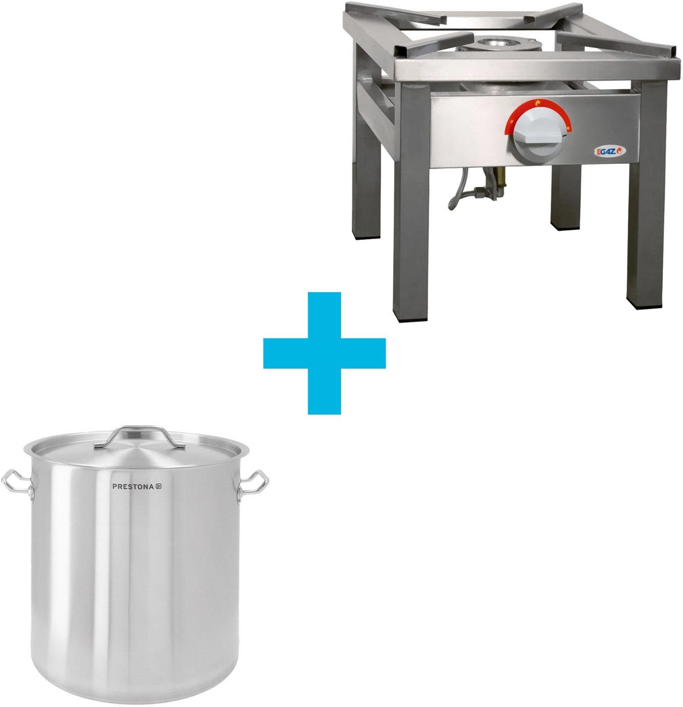 Technica [Zestaw] Garnek Wysoki Z Pokrywką Ze Stali Nierdzewnej O Średnicy 360mm, 36 L + Taboret Gazowy 400x400x350mm, 6,5 Kw Tychy