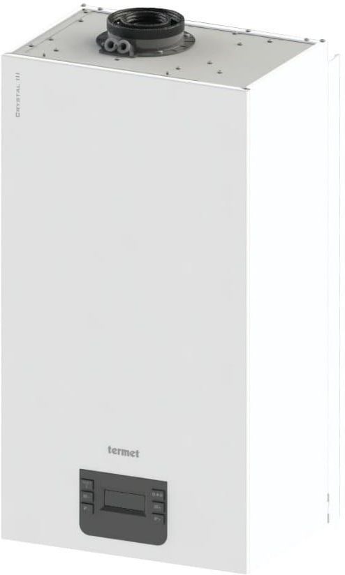 TERMET Crystal III 25 (jednofunkcyjny) - nowoczesny kocioł kondensacyjny dla wymagających CRYSTAL III to innowacyjny kocioł kondensacyjny, który łączy najwyższą sprawność, cichą pracę i pełne bezpieczeństwo użytkowania. Dzięki technologii modulacji płomienia, funkcji łagodnego zapłonu oraz precyzyjnej regulacji mocy, urządzenie idealnie dostosowuje się do aktualnych potrzeb cieplnych budynku. To rozwiązanie ekonomiczne i ekologiczne, które sprawdzi się zarówno w nowych instalacjach, jak i podczas modernizacji systemów grzewczych.Wybierając kocioł CRYSTAL III, zyskujesz komfort cieplny, oszczędność energii oraz niezawodność na lata. Zalety techniczno użytkowe: Klasa energetyczna A – wysoka efektywność energetyczna i niższe rachunki za ogrzewanie. System OPEN-THERM – możliwość zdalnego sterowania parametrami kotła z regulatora pokojowego. Wysokosprawny wymiennik ciepła – pojedyncza wężownica ze stali nierdzewnej zapewnia długą żywotność i doskonały transfer ciepła. Praca w układzie kaskadowym – możliwość połączenia do 4 kotłów dla większych instalacji. Wysokoefektywna pompa obiegowa – oszczędność energii i niezawodne działanie. Wentylator z płynną regulacją obrotów – elektroniczne sterowanie dla optymalnej pracy i niskiego poziomu hałasu. Palnik cylindryczny ze stali nierdzewnej – niska emisja NOx (klasa 6), przyjazna dla środowiska praca. Pełny system zabezpieczeń – gwarancja bezpiecznej eksploatacji. Elektroniczna modulacja płomienia – precyzyjne dostosowanie mocy do zapotrzebowania. Możliwość pracy z modułami wielostrefowymi – idealne do rozbudowanych systemów grzewczych. Kompatybilność z pompami ciepła powietrze/woda – wsparcie nowoczesnych instalacji hybrydowych. Współpraca z kolektorami słonecznymi – jeszcze większa oszczędność i ekologiczne ogrzewanie. Doskonała praca na mocy minimalnej sprawia, że urządzenia sprawdzają się nawet w mieszkaniach o małej powierzchni, ponieważ nie generują strat ciepła - użytkownik płaci za energię faktycznie wykorzystaną. Dodatkowo znaczne obniżenie mocy minimalnej ogranicza liczbę zapłonów, dzięki czemu urządzenia działają płynniej, nie obciążając innych podzespołów kotła. Gwarantuje to długoletnią i bezawaryjną pracę. Parametry techniczne 20 25 35 Klasa sezonowej efektywności ogrzewania pomieszczeń A A A Moc grzewcza 20 25 35 Sezonowa efektywność energetyczna ogrzewania pomieszczeń ηs 94 % 94 % 94 % Roczne zużycie energii (QHE) 38,4 GJ 47,3 GJ 70,1 GJ Moc cieplna (przy temp. 50/30°C) 3,8-21,0 kW 4,9-26,6 kW 5,5-38,0 kW Sprawność użyteczna kotła dla częściowego obciążenia i temp. wody powrotnej 30°C ~108 % ~108 % ~108 % Maksymalne ciśnienie wody 3 bar 3 bar 3 bar Pojemność naczynia wzbiorczego 8 dm³ 8 dm³ 8 dm³ Poziom mocy akustycznej 47,4 dB 48,9 dB 50,8 dB Emisja tlenków azotu NOx 32,3 mg/kWh 35,8 mg/kWh 39,7 mg/kWh Podłączenie do przewodu kominowego Koncentryczne Ø80/Ø125 mm, Ø60/Ø100 mm lub dwa pojedyncze Ø80* mm Rodzaj i napięcie prądu elektrycznego ~ 230 ±10% / 50Hz Wysokość x szerokość x głębokość 775 x 400 x 310 mm Waga 32,0 kg 34,0 kg 37,0 kg