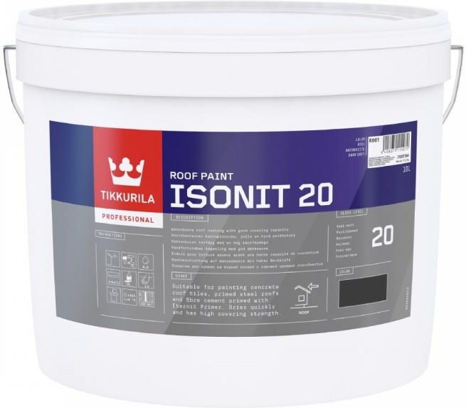 Tikkurila Isonit 20 – Farba do dachów Opis produktu: Tikkurila Isonit 20 to wodorozcieńczalna farba przeznaczona do odświeżania i ochrony dachów. Dzięki wysokiej sile krycia i łatwości aplikacji zapewnia nowoczesny wygląd i długotrwałą ochronę powierzchni dachu. Kluczowe cechy produktu: Nowy wygląd i ochrona dachu: Przywraca estetykę pokrycia dachowego.Chroni przed działaniem deszczu, śniegu, promieniowania UV i innych czynników atmosferycznych. Łatwa aplikacja: Wysoka siła krycia i łatwość rozprowadzania.Możliwość aplikacji za pomocą pędzla, wałka lub natrysku.Krótki czas schnięcia. Długotrwała trwałość: Tworzy trwałą, hydrofobową powłokę odporną na promieniowanie słoneczne i wodę.Otwarta dyfuzyjnie (przepuszcza parę wodną). Przykłady zastosowania: Dachówki betonowe.Płyty włóknisto-cementowe.Zagruntowane dachy stalowe.Płyty włóknisto-cementowe, zagruntowane podkładem Tikkurila Eternit Primer. Uwaga: Nie nadaje się do stosowania na dachówkach ceramicznych ani na naturalnym łupku. Specyfikacje techniczne: Wydajność: 2-3 m²/l przy dwóch warstwach. (Zależne od metody aplikacji i struktury podłoża).Rozcieńczalnik: Woda.Dostępność: W gotowych kolorach oraz wersji do barwienia. Warunki aplikacji: Możliwość aplikacji w temperaturze otoczenia i powierzchni powyżej +5°C.Należy stosować na czyste i suche powierzchnie. Dzięki Tikkurila Isonit 20 Twój dach zyskuje nie tylko nowoczesny wygląd, ale także długotrwałą ochronę przed wymagającymi warunkami atmosferycznymi.