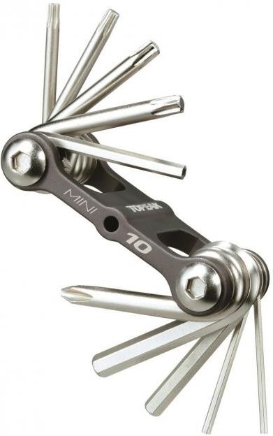 Zestaw narzędzi kluczy rowerowych scyzoryk Topeak Mini 10 10 w 1 T-TT2557 ⭕ Producent: Topeak ⭕ Model: Mini 10 ⭕ Materiał: Hartowana stal ⭕ Rozmiar: 6.6 x 3.3 x 2.1 cm ⭕ Waga: ~ 83 g Zestaw zawiera ✅ Klucze imbusowe: 1.5 / 2 / 3 / 4 / 5 mm ✅ Klucze torx® T10 / T15 / T20 / T25 ✅ Śrubokręt krzyżakowy Zestaw narzędzi/kluczy (scyzoryk) Topeak Mini 10 10 w 1 To lekkie, kompaktowe narzędzie, które zawsze możemy nosić przy sobie. Dzięki eleganckiej konstrukcji pasuje zarówno do skrzynki narzędziowej jak i garnituru. Mini 10 przeznaczony jest do konserwacji komponentów w nowoczesnych rowerach jak i drobnych napraw.