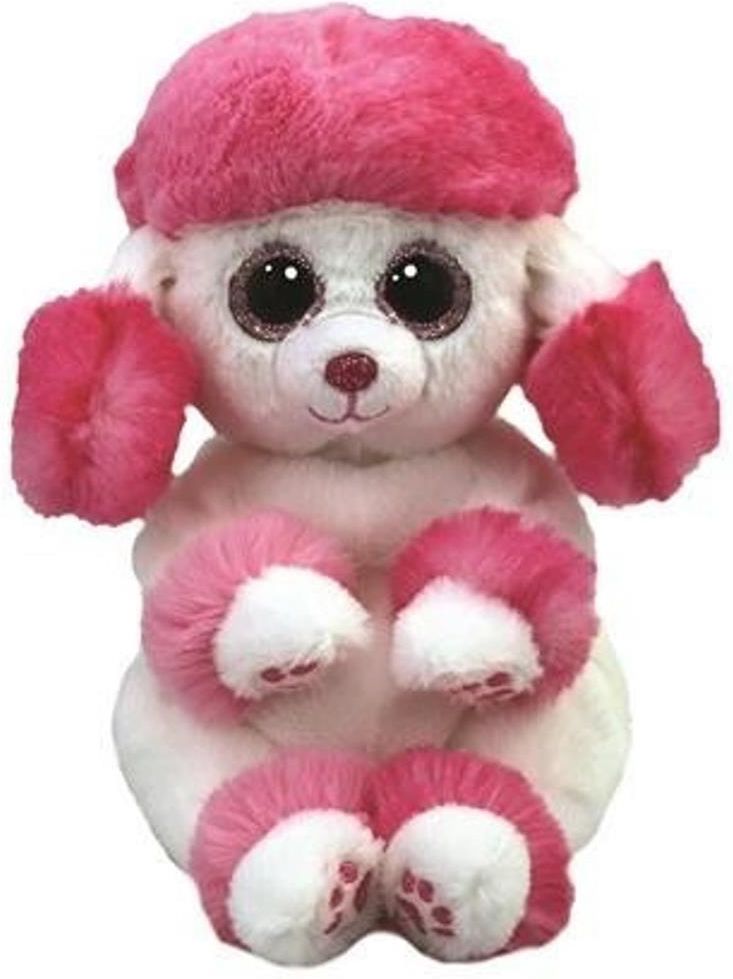 Maskotka TY Beanie Bellies to różowo-biały pudel, o imieniu Heartly. Maskotka została wykonana z miękkiego i przyjemnego w dotyku pluszu. Posiada piękne, brokatowe oczy. Produkt zawiera cechy charakterystyczne zwierzątka, które odwzorowuje. Pudelek ma doszyte uszka i ogonek. Urocza główka automatycznie przyciągnie uwagę dzieci. Podstawa została wypełniona małymi groszkami. Maskotka świetnie nadaje się do zabawy i przytulania dla każdego dziecka. Cechy produktu: - zabawka wykonana z miękkiego i przyjemnego w dotyku pluszu, - podstawa maskotki została wypełniona małymi groszkami, - posiada błyszczące oczy zdobione brokatem. Wymiary produktu (siedzący): 11x15x12cm Wiek: 3+