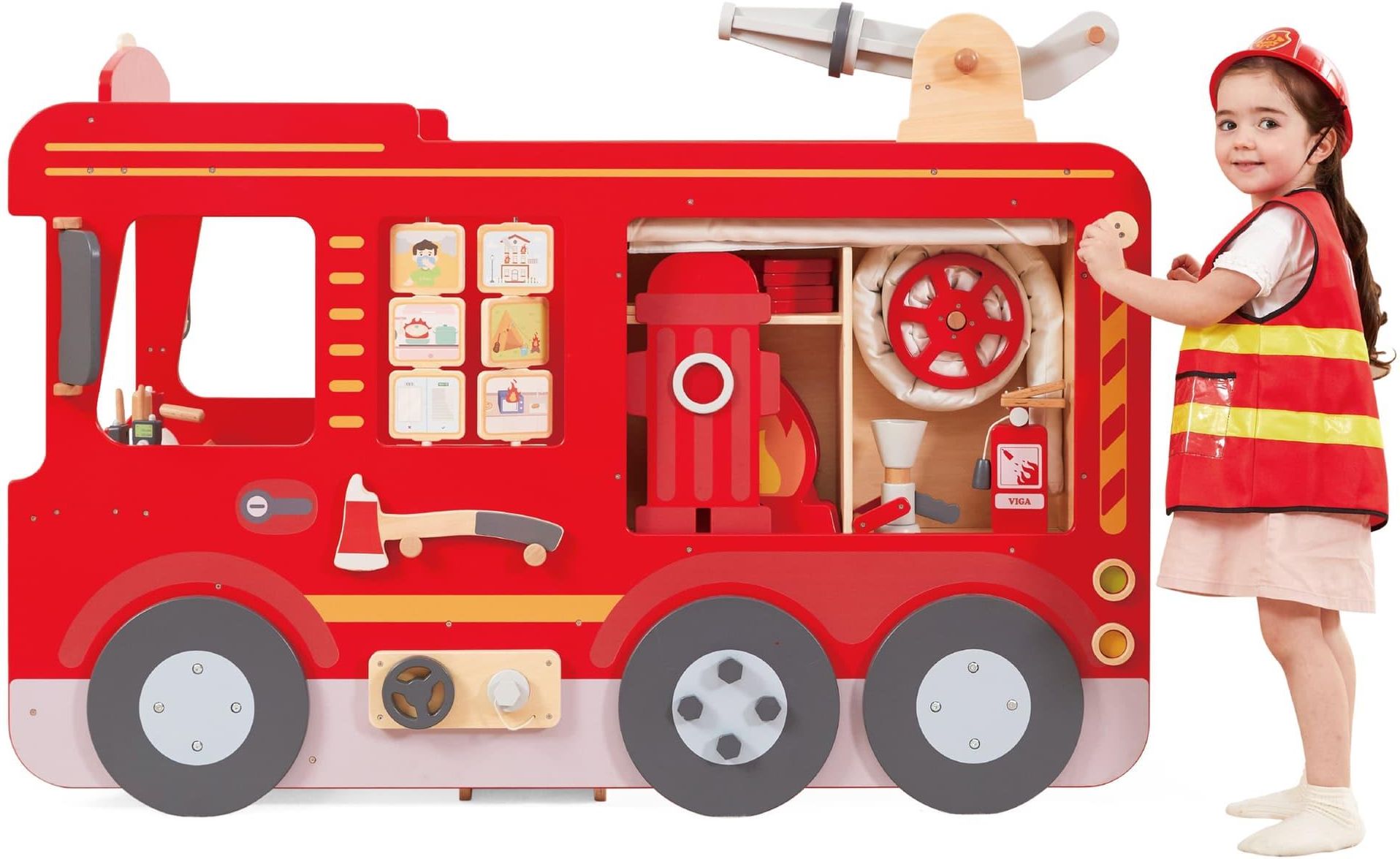VIGA Duży Drewniany Wóz Strażacki Plac Zabaw Montessori Duży Drewniany Samochód Strażacki od marki VIGA to zabawka, która zapewnia dzieciom bogate doświadczenie w świecie ratownictwa pożarowego. To także wielki wewnętrzny plac zabaw , gdzie dzieci mogą razem wymyślać wiele zabaw. Dzieci mogą …