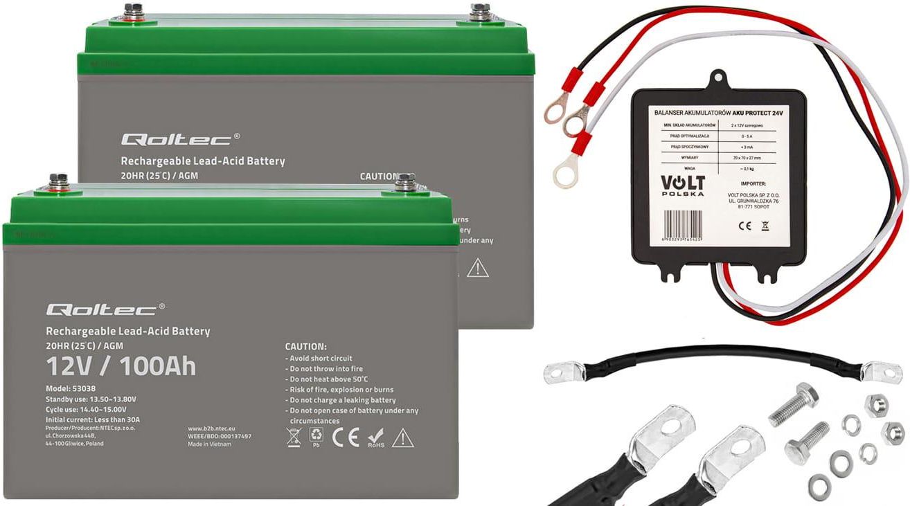 Volt Polska / Qoltec Zestaw: 2 x akumulator Qoltec AGM LongLife 12V 100Ah + balanser do zestawu akumulatorów 24V Tychy