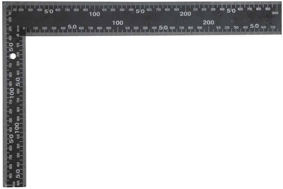 Kątownik metalowy czarny 200x300 mm 18201 Kątownik płaski, wykonany z grubej blachy, lakierowany na czarno z naniesioną czytelną, białą podziałką milimetrową z jednej i calową z drugiej strony. Do wyznaczania kąta prostego podczas prac budowlanych i pomiarowych Cechy produktu: Materiał: stal Wykończenie powierzchni: lakierowana Rozmiar: 200x300 mm Skala metryczna: tak Skala calowa: tak