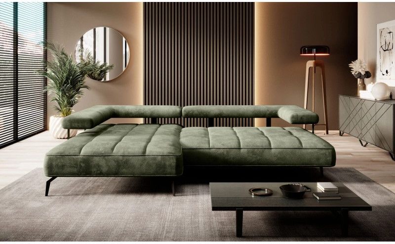 Montella S to nowoczesny narożnik z eleganckimi przeszyciami, regulowanymi zagłówkami i elektryczną funkcją relaksu, zapewniający wyjątkowy komfort.