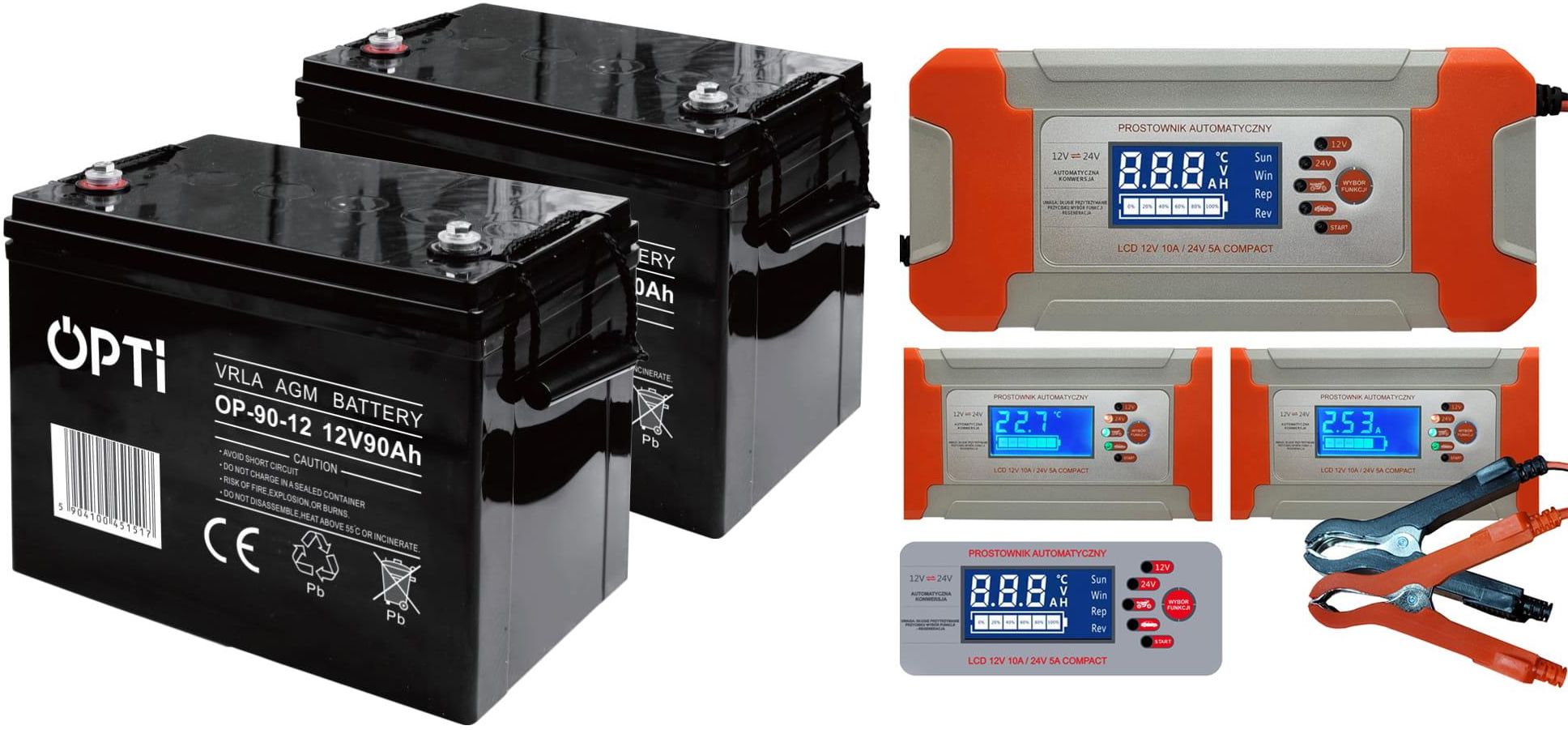 Zestaw 2x akumulator Volt OPTI VRLA AGM 12V 90Ah + prostownik COMPACT 10A Tychy