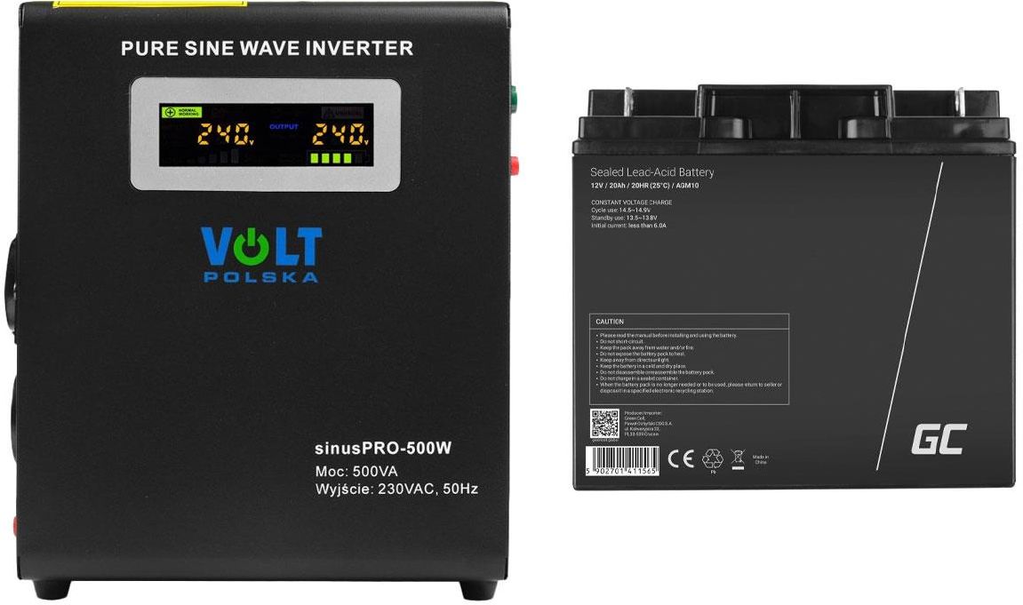Zestaw: zasilacz awaryjny Volt Sinus Pro 500 W 500VA/300W + akumulator Green Cell AGM VRLA 12V 20Ah Tychy