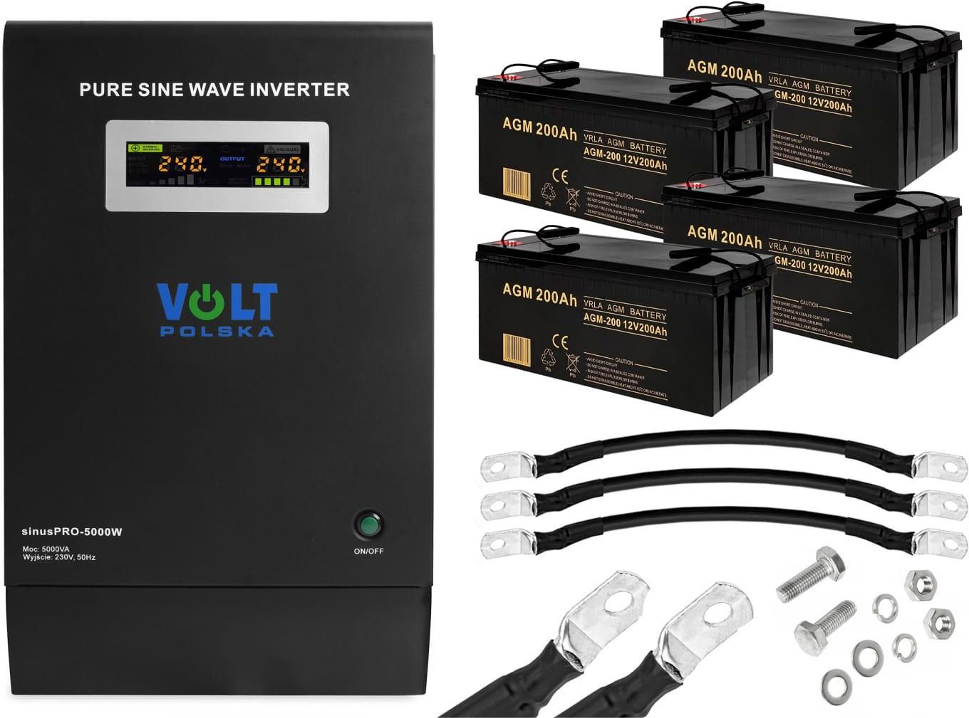Zestaw: zasilacz awaryjny Volt Sinus Pro 5000 W 5000VA/3400W + 4 x akumulator Volt VRLA AGM 12V 200Ah Tychy