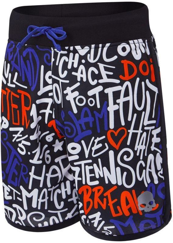 Męskie spodenki sportowe Graffiti Tech Shorts - doskonale nadają się do uprawiania każdej aktywności sportowej zarówno na powietrzu jak i w hali. Spodenki o regularnym kroju, przeznaczone zarówno do intensywnego użytkowania jak i na co dzień. Spodenki wykonane z miękkiego, lekkiego i oddychającego materiału, który odprowadza wilgoć na zewnątrz. Pozwala to na uzyskanie efektywnej kontroli temperatury ciała, dzięki czemu można w komfortowy sposób prowadzić grę nawet w trudnych warunkach. Szeroki, elastyczny ściągacz ze sznurkiem w pasie dla odpowiedniego dopasowania do kształtu sylwetki. Rozcięcia przy nogawkach dla większej swobody ruchów. Dwie głębokie kieszenie boczne. Kontrastowe. Spodenki zdobione w kolorowe napisy. Logo Hydrogen na lewej nogawce. Brak wewnętrznych spodenek. Kolor: black (za producenem) Materiał: 100% poliester