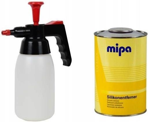 MIPA ZMYWACZ SILIKONU SILIKONENTFERNER 1L + ATOMIZER Zmywacz silikonu Mipa jest środkiem czyszczącym i odtłuszczającym pozbawionym węglowodoru chlorowanego przeznaczonym do zastosowania na wszystkich podłożach metalicznych i polimerycznych. Nanosić pędzlem, szczotką, szmatką, gąbką lub natryskiwać. Profesjonalny pojemnik z pompką rozpylaczem do aplikacji preparatów czyszczących. Wyprodukowany z wysoko stabilnego tworzywa sztucznego, nie zawierającego silikonu i odpornego na zmywacze. Idealnie nadaje się do wszelkich zmywaczy, nitro, benzyny ekstrakcyjnej. Produkt najwyższej jakości. Wytrzymała konstrukcja Odporny na większość substancji chemicznych Oszczędny w użyciu. Dokładne dozowanie. Bardzo wygodny w użyciu. Odpowiedni, ergonomiczny kształt. Doskonale dopasowany do dłoni użytkownika. Niewielka waga. Łatwość i precyzja aplikacji. Numer katalogowy: 59801000